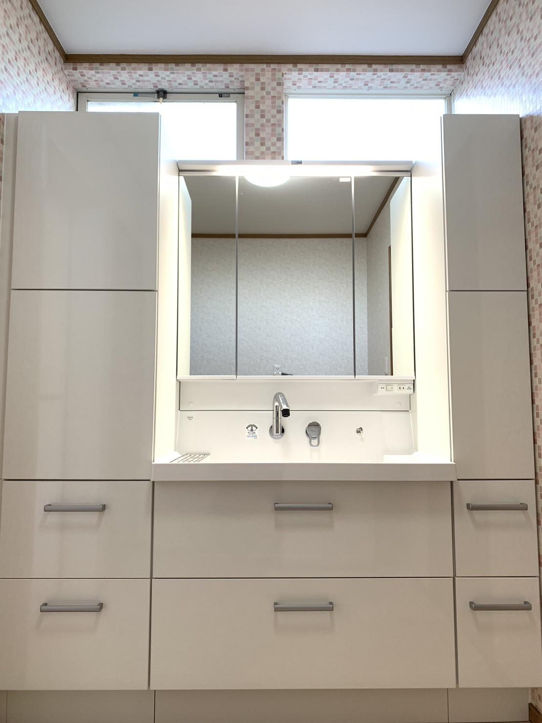 浴室、洗面化粧台の改修工事を致しました。 使い勝手の良い、そしてお手入れのしやすい浴室を選ばれました。 とても明るい、スッキリした、そして温かい快適なお風呂に変身しました。 洗面化粧台は、明るく収納力抜群の洗面空間になりました。 ご夫婦とも、「リフォームして良かった。」のお声をいただきました。