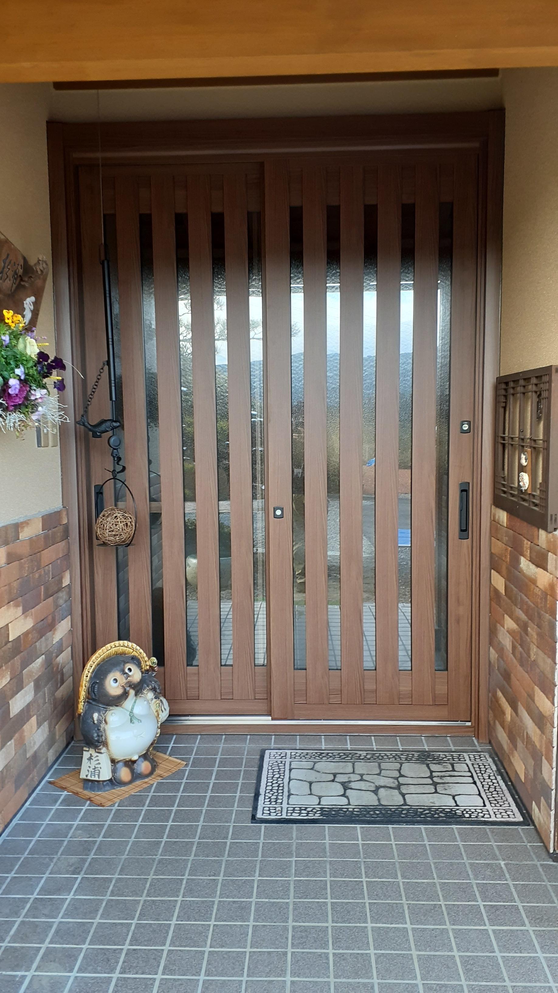 玄関引戸改修工事をさせていただきました。 従来の玄関引戸の老朽化に伴い、新しく断熱性の良い玄関引戸にかえられました。 風情のある和のお住いにモダンな感じのデザインを選ばれました。 採光もとれるデザインなので玄関内も明るく、快適に過ごせます。