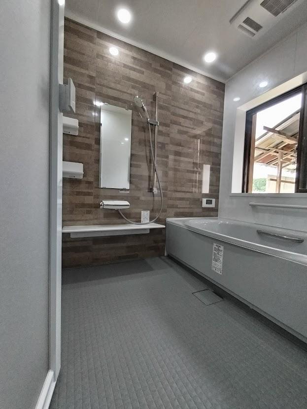 弊社ショールームのシステムバスの展示品を見てお打合せをさせていただき、性能や使い方、お手入れの仕方、壁の色目のご希望をおうかがいしました。お風呂の寒さも軽減され、安全性を考慮して手すりを付け、壁のアクセントも明るくオシャレなものに変身しました。