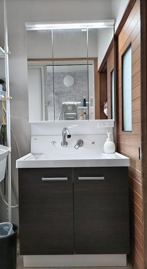 洗面化粧台の改修工事をさせていただきました。 洗面化粧台の老朽化に伴い、新しいものに交換をご希望されました。 ショールームに展示してあったピアラを気に入っていただきました。 ひろびろボウルで衣類を洗ったりバケツの水汲みもラクラクに出来ます。くるくる水栓はホースを出して使用できるのでボウルのお手入れも楽に出来ます。綺麗好きの奥様にピッタリです。