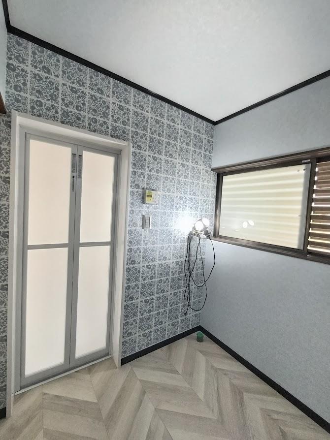 壁のクッションフロアとクロスを選ばれたのは娘さん。とっても明るくオシャレな空間になりました。