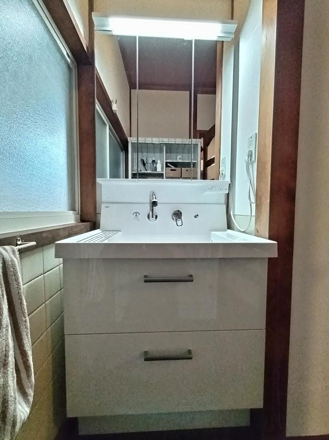 食洗機の工事のご依頼を頂き、あわせて洗面化粧台とキッチン水栓の工事も…と言っていただき、商品のご提案をさせていただきました。