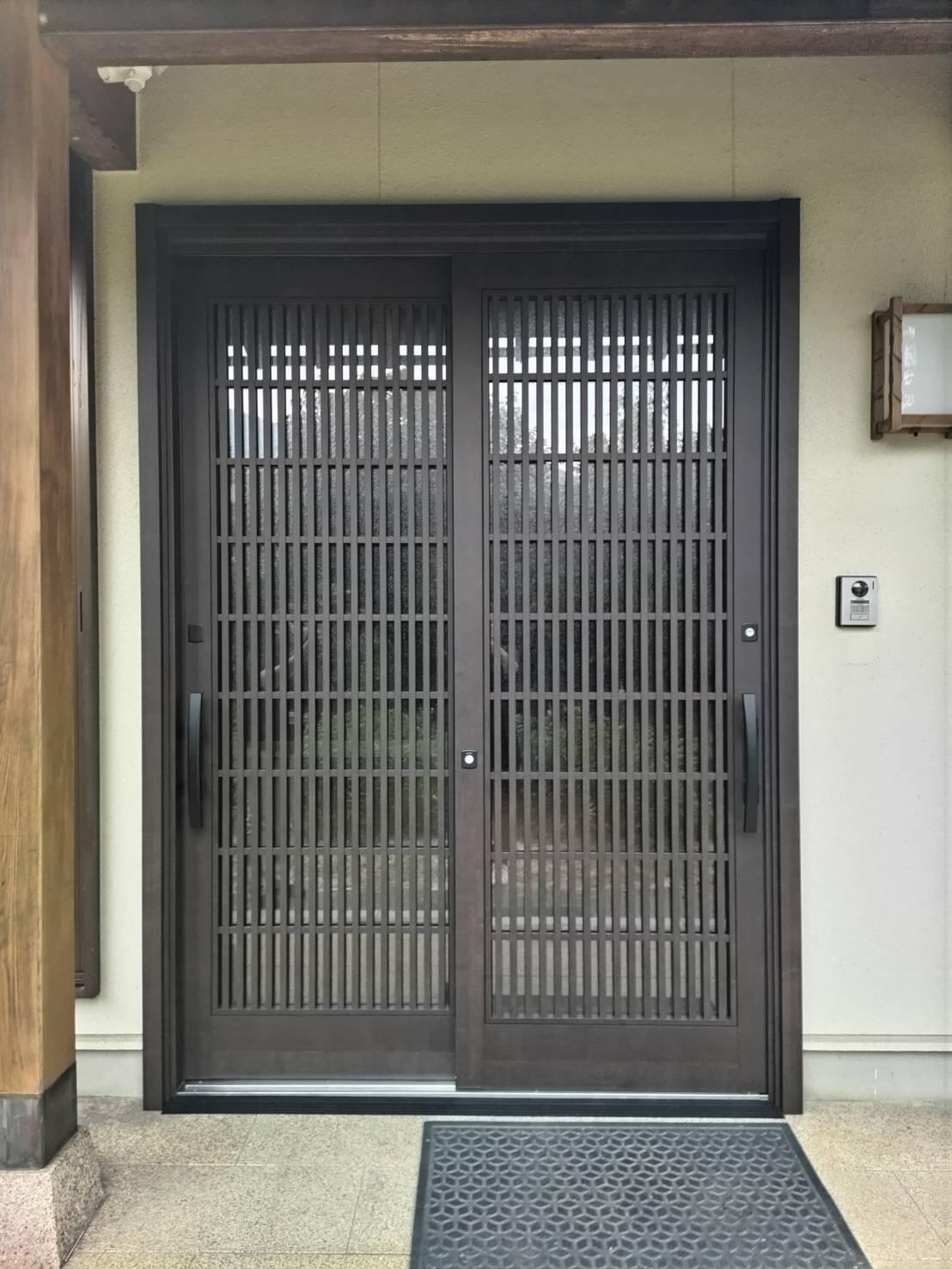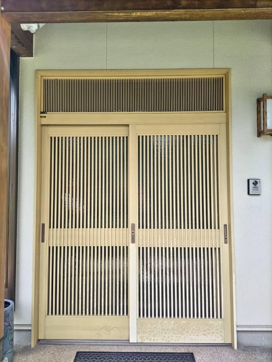 引き戸自体に不具合はありませんでしたが、長年強い日差しを受け表面の化粧シートが剥がれているのを気にして、ご相談にいらしたK様。玄関引戸の改修工事のご依頼をいただきました。