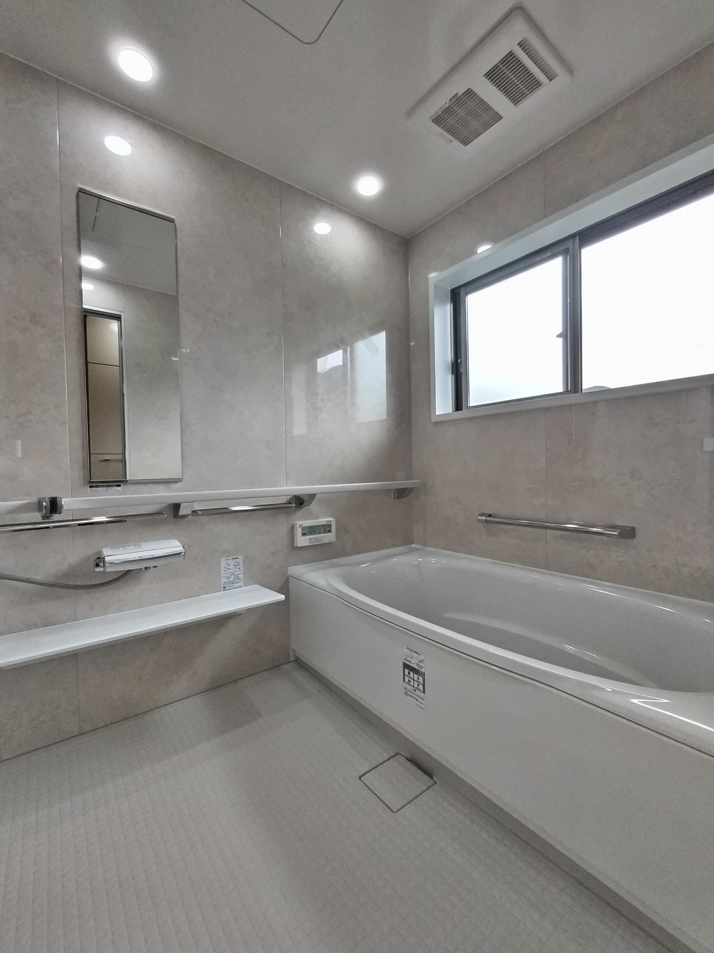 浴室と脱衣室でのヒートショックを気にされていたので、浴室は保温性の高いリデア、そして換気乾燥暖房機をご採用。脱衣室には、断熱効果の高いインプラスをご採用されました。脱衣室には、もともと暖房機が設置されていて、その暖房機を効率よく生かせる場所に再設置させていただきました。