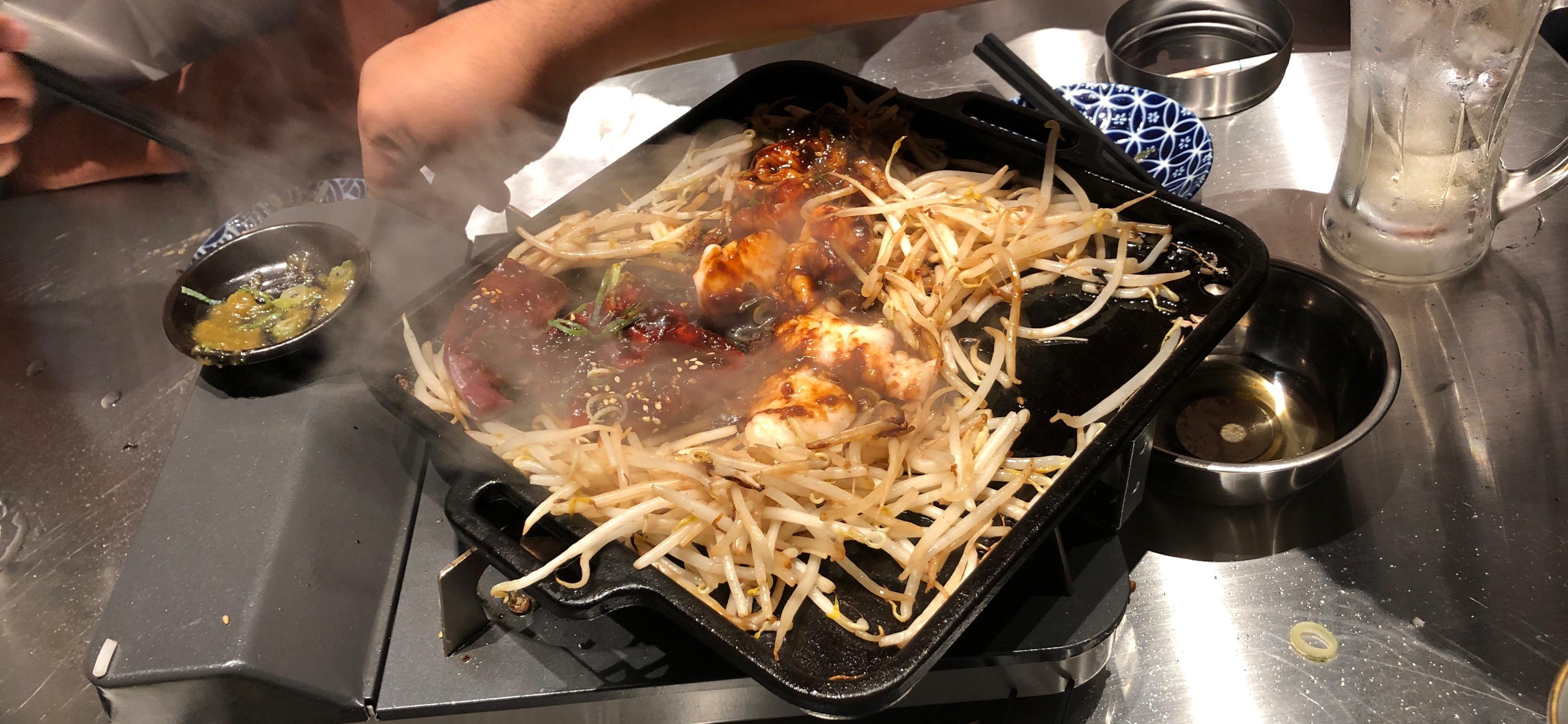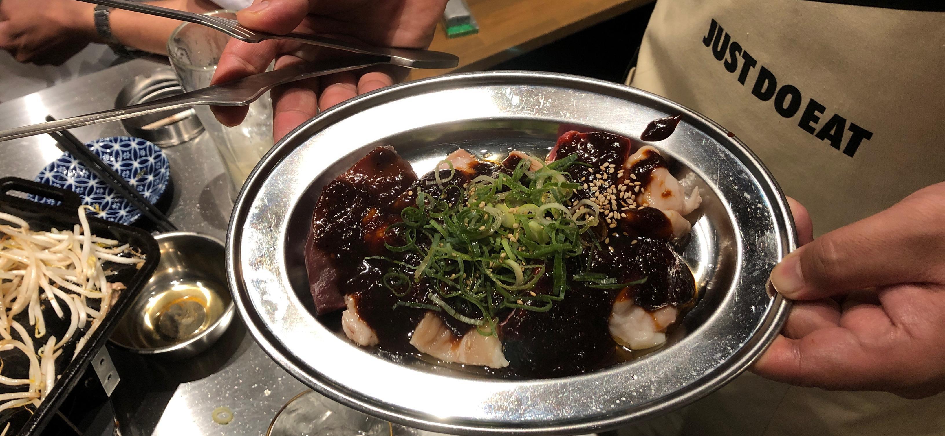 ぷりぷりホルモンをこってりお味噌と一緒に目の前で焼いて頂きます・・・!