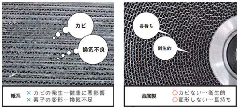 『浴室からの換気も可能にした金属製素子』