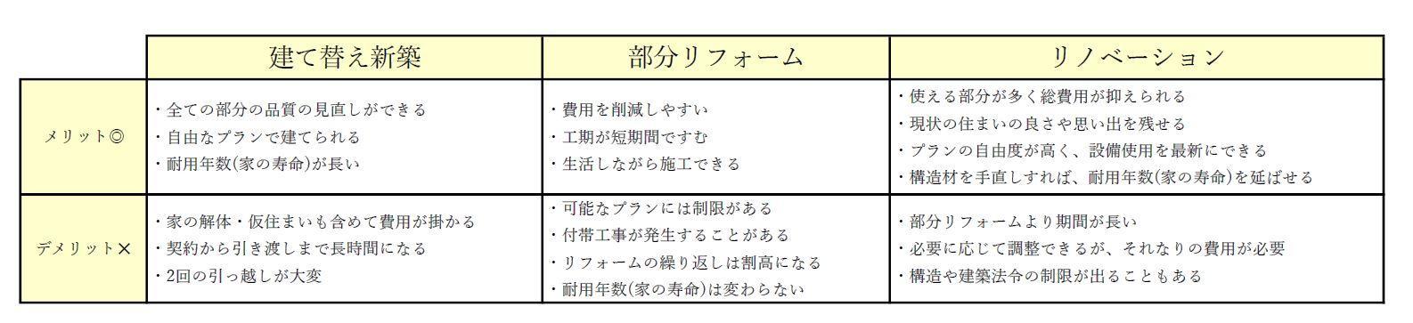建て替え新築・部分リフォーム・リノベーションのそれぞれの違いと特徴についてご説明します。