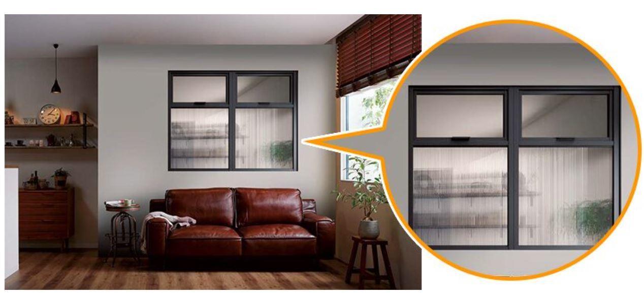 上段は光をよく通す透明ガラス、視線を遮りたい下段はモールガラスに!*視界が明るくなりますね(´∪`*人)