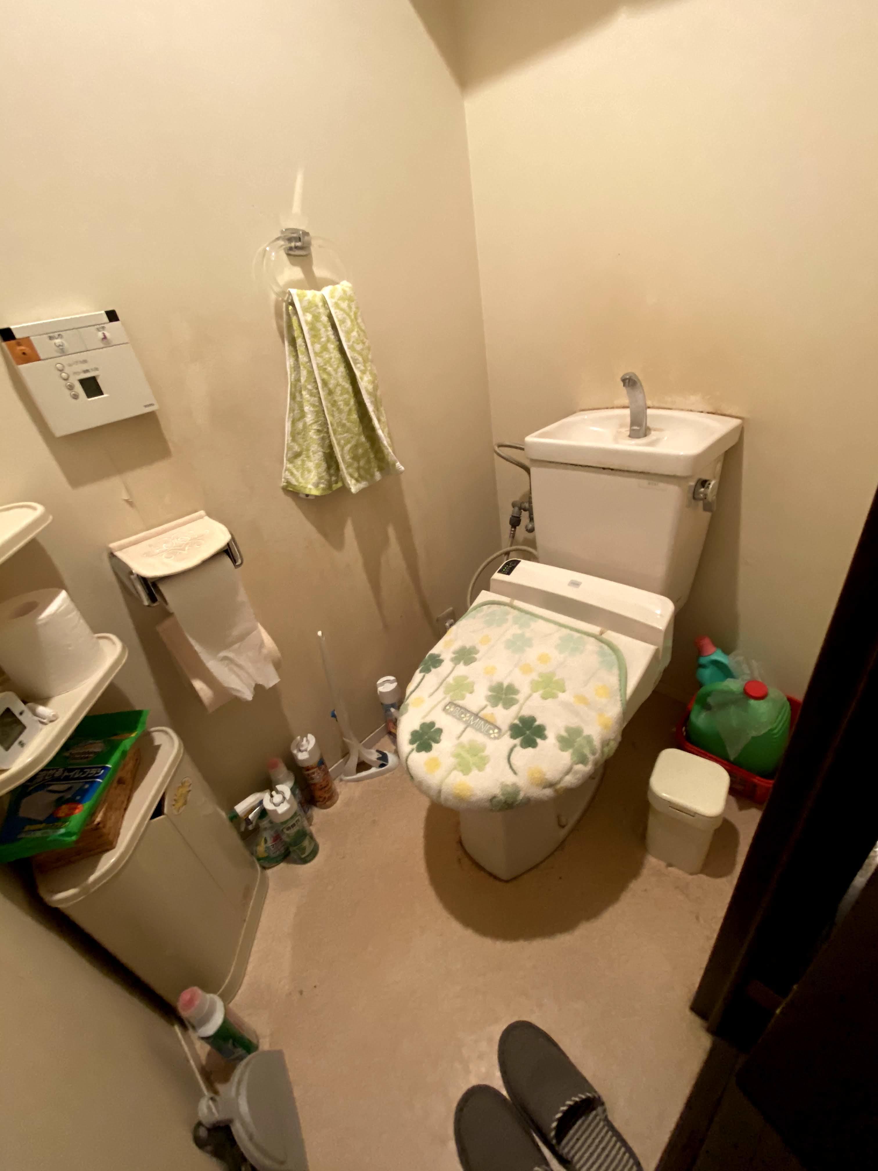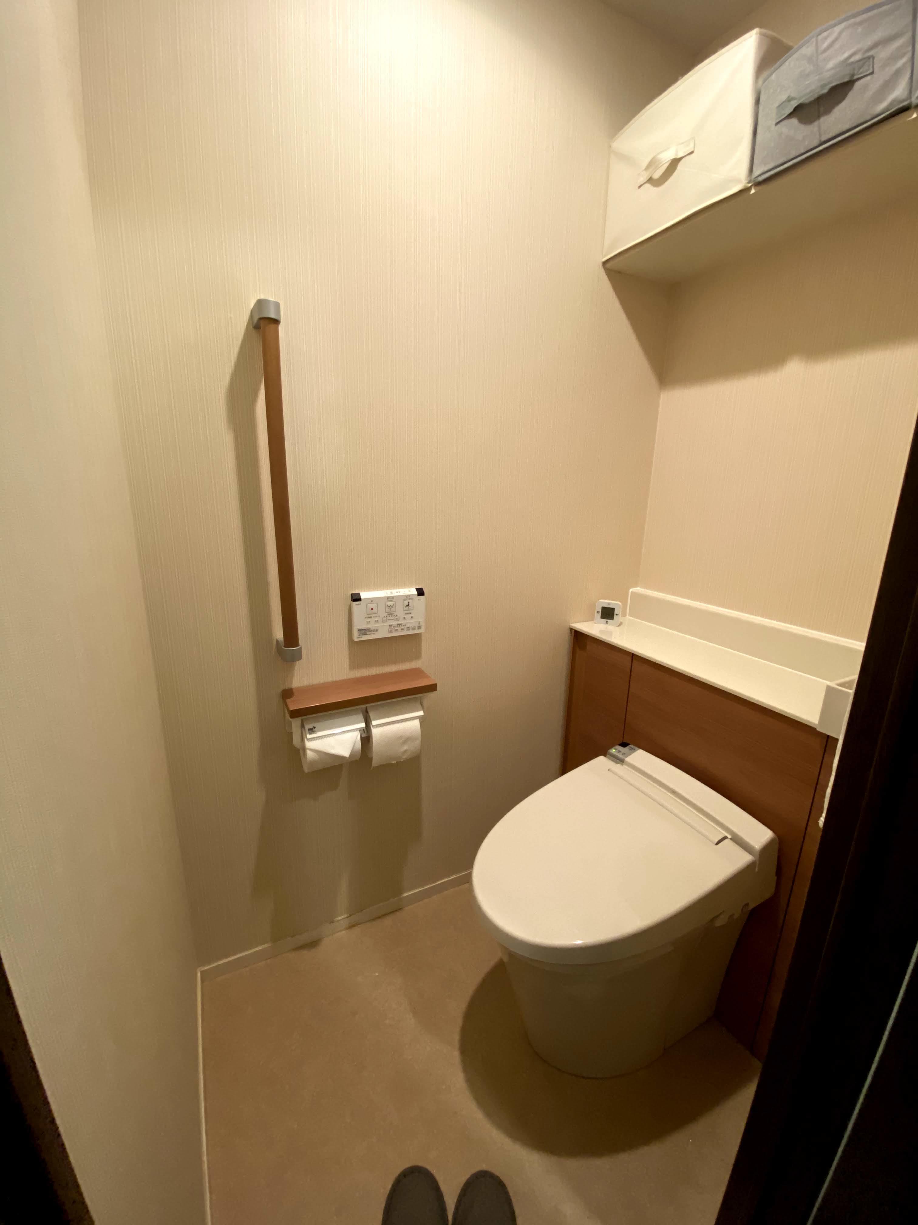 スッキリしたデザインでお手入れしやすく節水型トイレです。広々とみえます。
