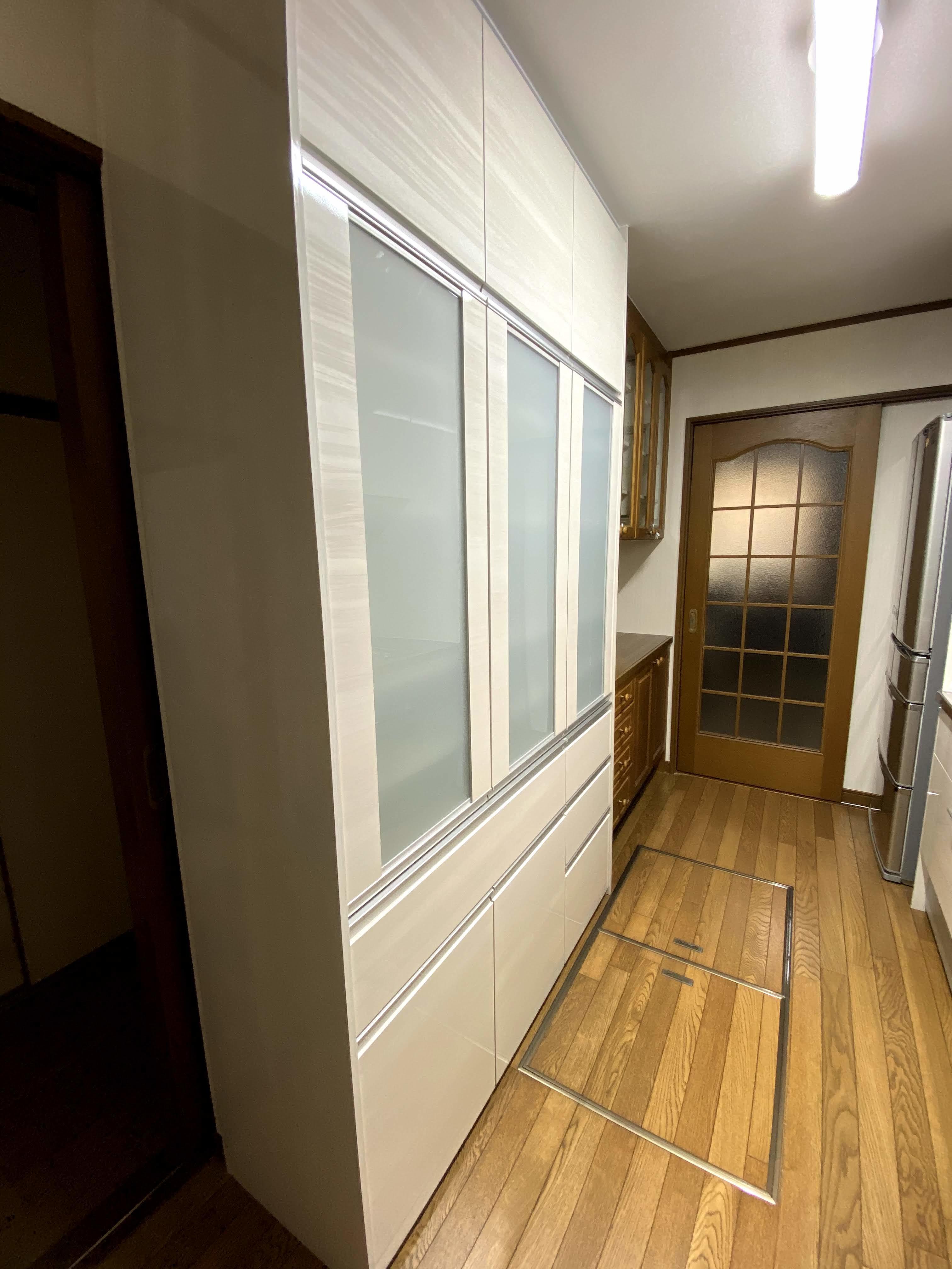 キッチンに合わせることで統一感のあるキッチンにみえます。 半透明の扉で外からもすっきりみえます。清潔感のあるお手入れのしやすいデザインです。