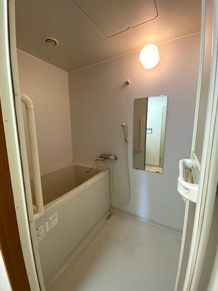 高級感のあるユニットバス デザイン性に優れただけでなく、機能性にも優れたユニットバス。 節水シャワーヘッドや浴室乾燥機など設備を整えました。