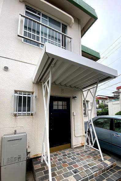 既存の重たいひさしを、防災面も外観も向上したデザインに仕上げました。