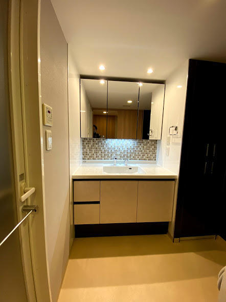 陶器製ボウルとセラミックカウンターはキズ、汚れ、熱に強く、美しさを長く保てます。 また、バックパネルに空間を彩るモザイクタイルを使用し、洗練された洗面空間になりました。