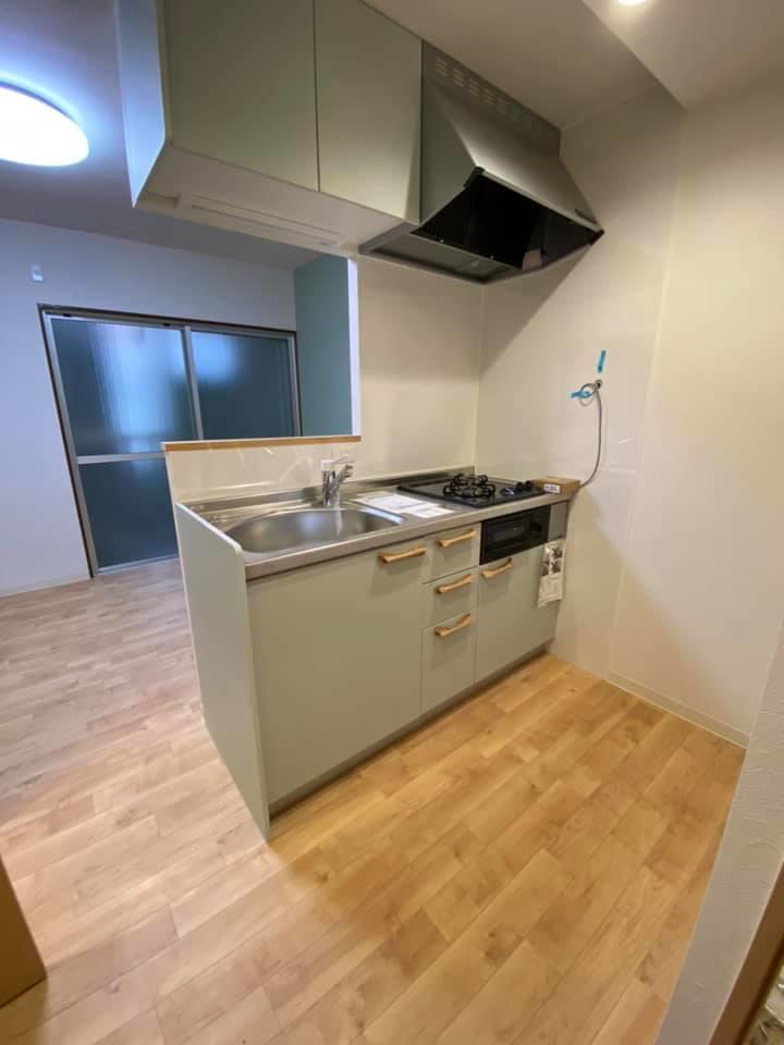 ビルトインコンロ換気扇などお手入れのしやすさと明るい色のキッチンでお洒落なキッチンになりました。
