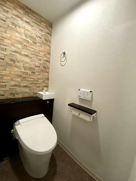 キャビネット付きトイレとアクセントクロスでお洒落なトイレになりました。