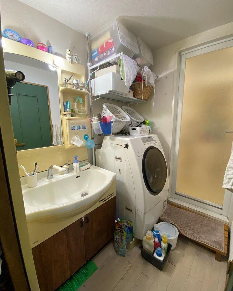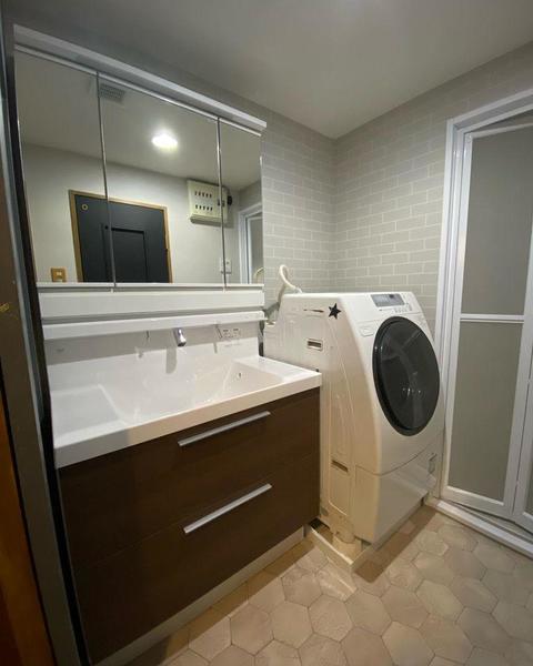 タッチレス水栓で手を差し出すだけで触れずに上から吐水するので、水栓まわりに水がたまらず清潔でお手入れもしやすい洗面化粧台です。また、収納もたっぷりあってスッキリとした印象の洗面所になりました。