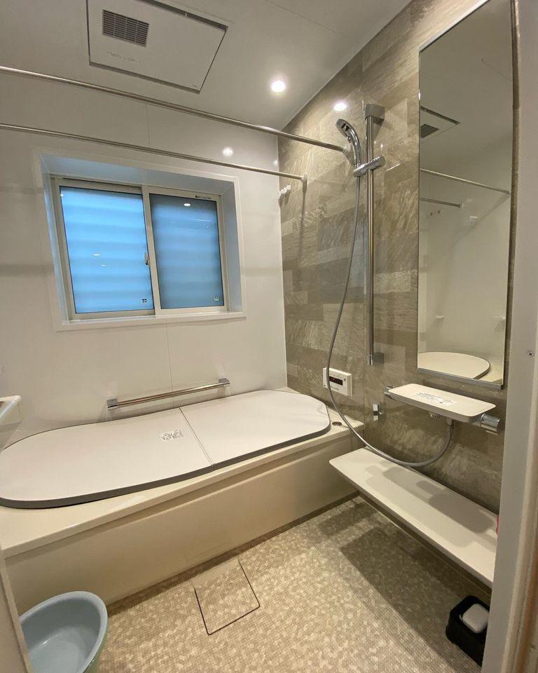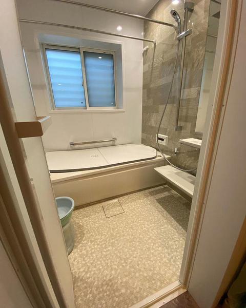 断熱クッション層が柔らかく快適なうえに、お手入れのしやすさも魅力な床や人工大理石調浴槽できれいであたたかくくつろげるバスルームになりました。