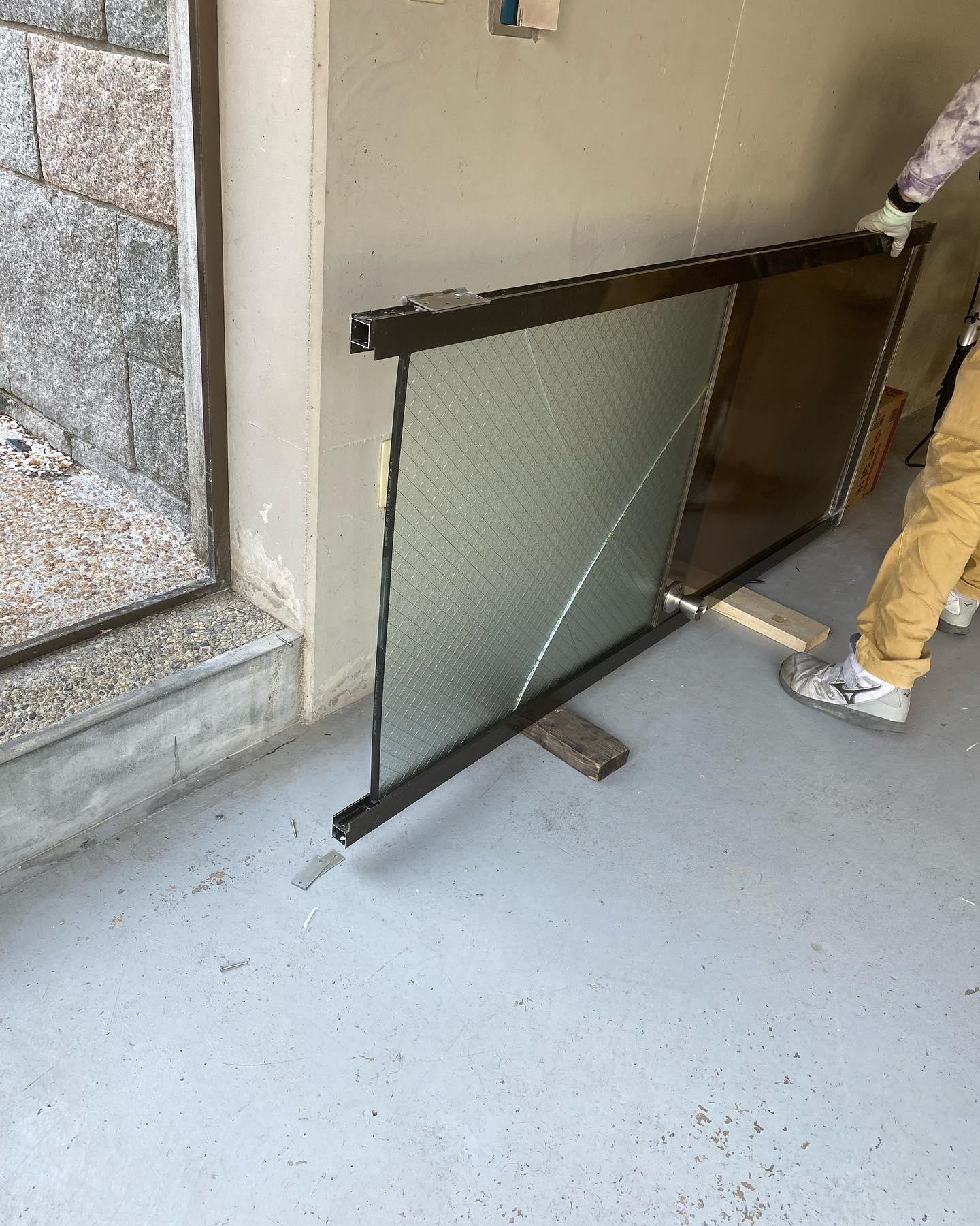 重たいガラスを軽量化して現地で30分で取り換えました。