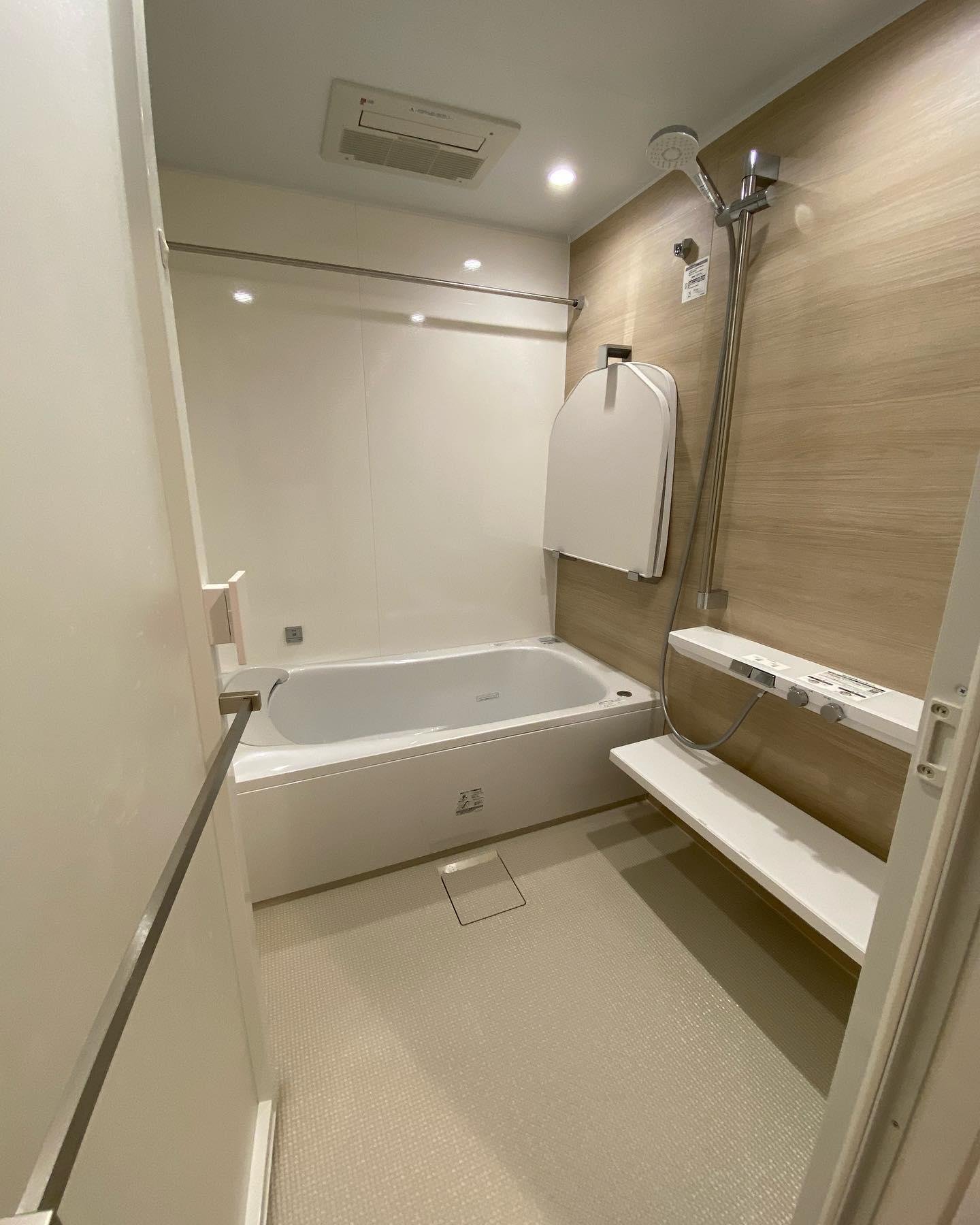 木目調で洗練されたデザイン。肩湯腰湯も使える機能で快適でくつろげるバスルームになりました。