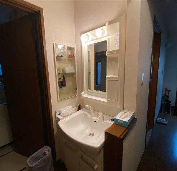底が広くて大容量の「ひろびろボウル」と、使いたい位置にくるりと回せる「くるくる水栓」で使いやすく、二人並んでの身支度もできます。お手入れもしやすく、明るい洗面室になりました。