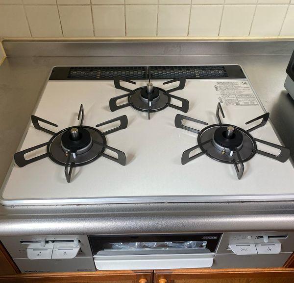 お手入れのしやすいガラストップコートのガスコンロに取り替えました。