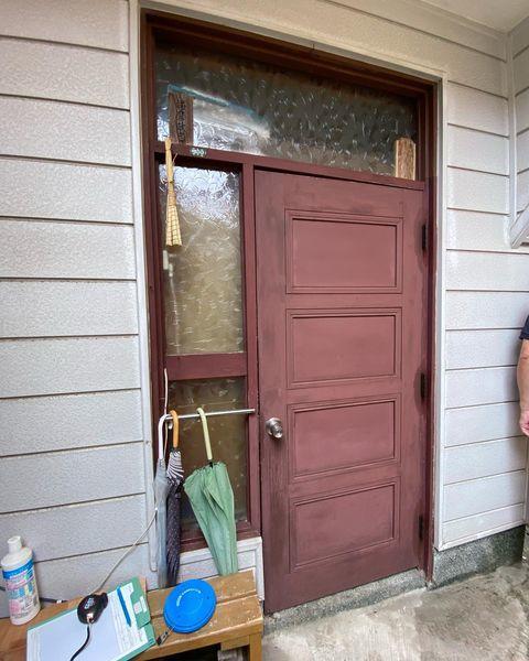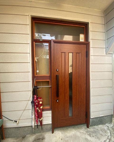 地震の影響で傾きがあり、隙間風が入りカタカタ鳴るのが気になっていた玄関。ガラスが単板の為防犯上も不安。取手が握り玉で開閉も大変。