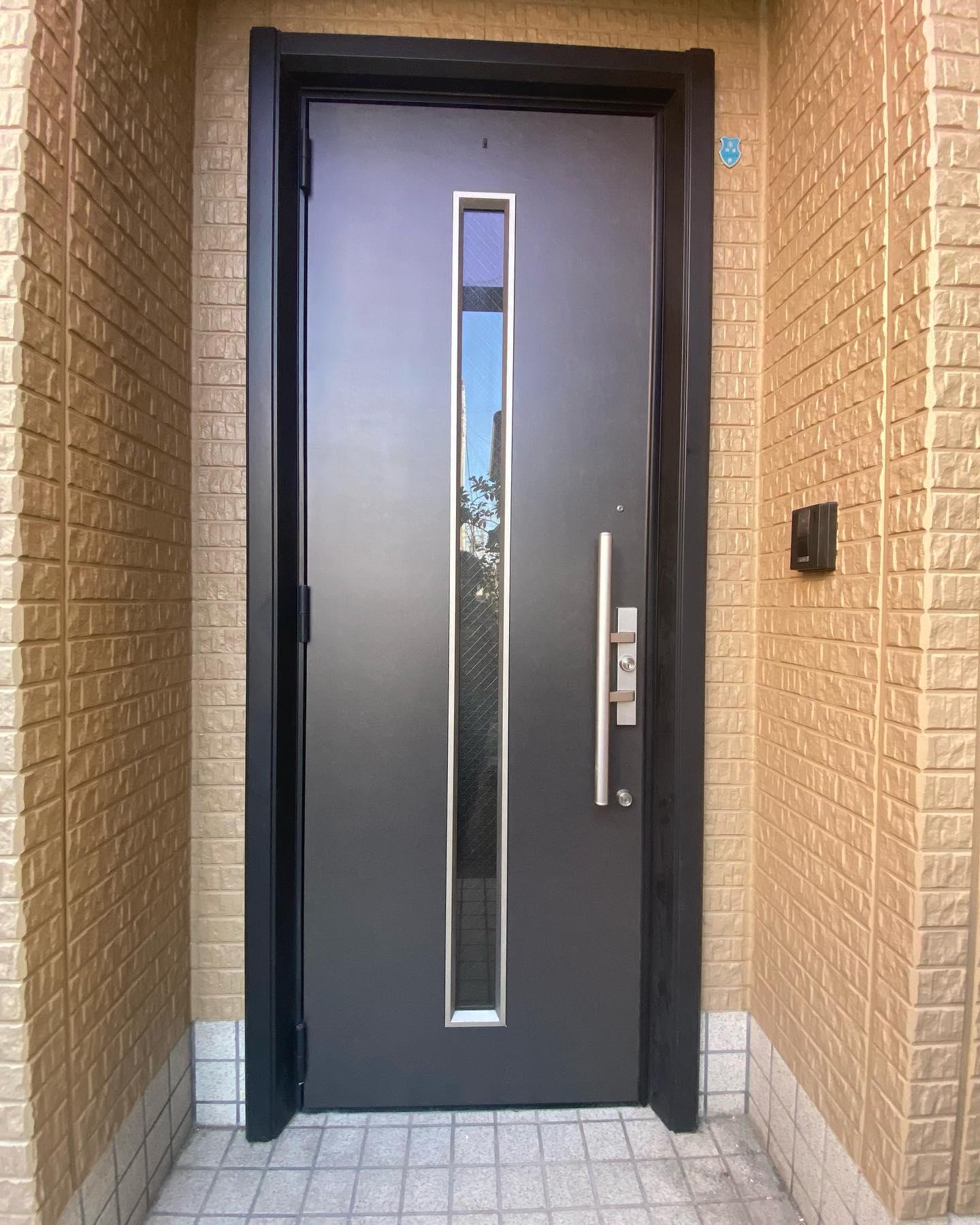 西陽で焼けた玄関ドア、耐光性シートを貼るだけで新品に替えたように。