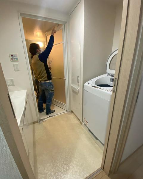 脱衣所のクッションフロアを貼り替え(床下地補修)。