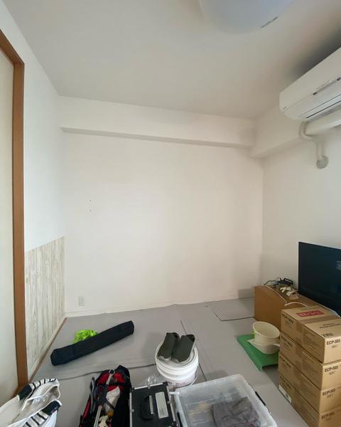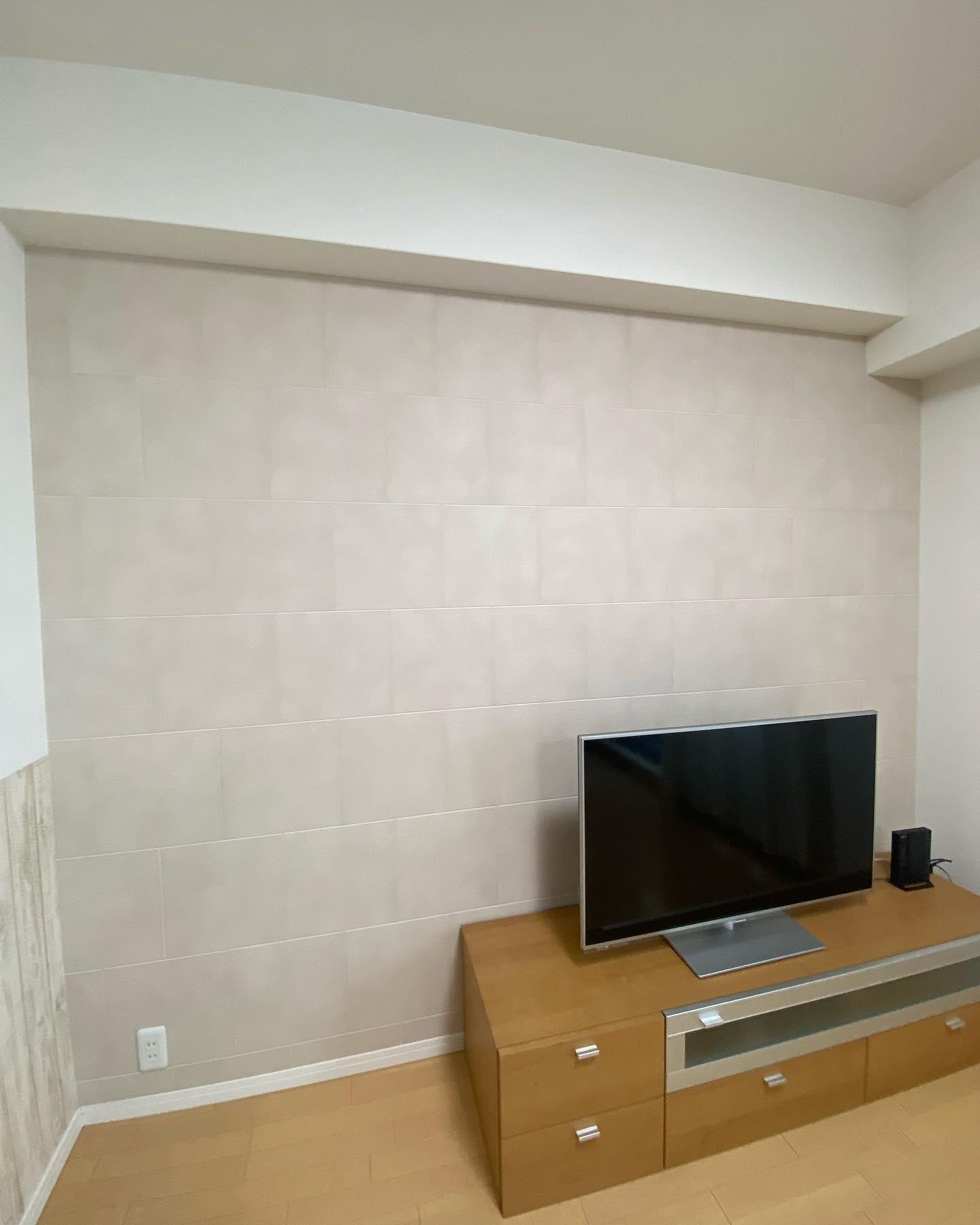 マンションリビングの壁に、LIXILエコカラットプラス。 お部屋のアクセントになり吸放室湿防臭効果も期待できます。