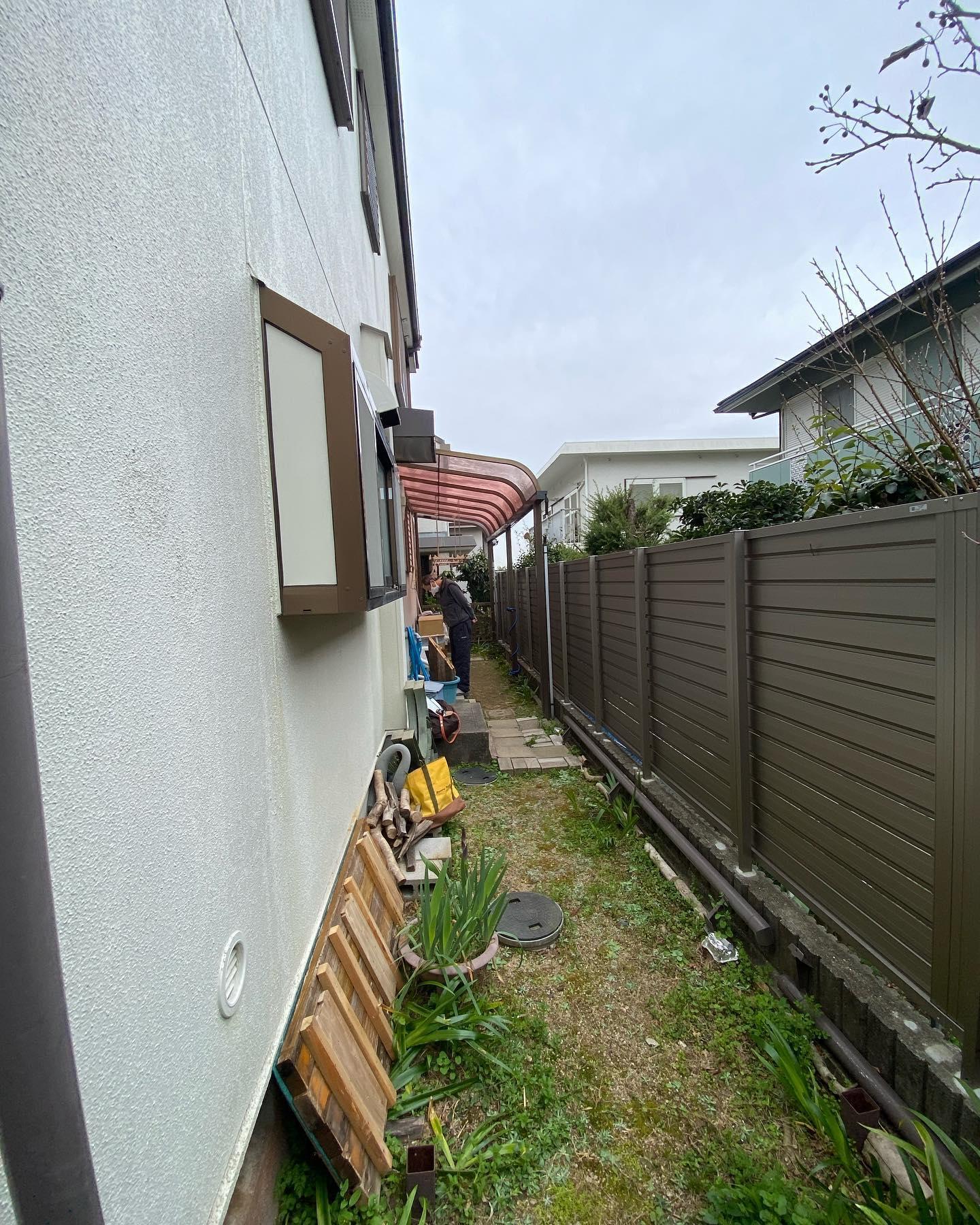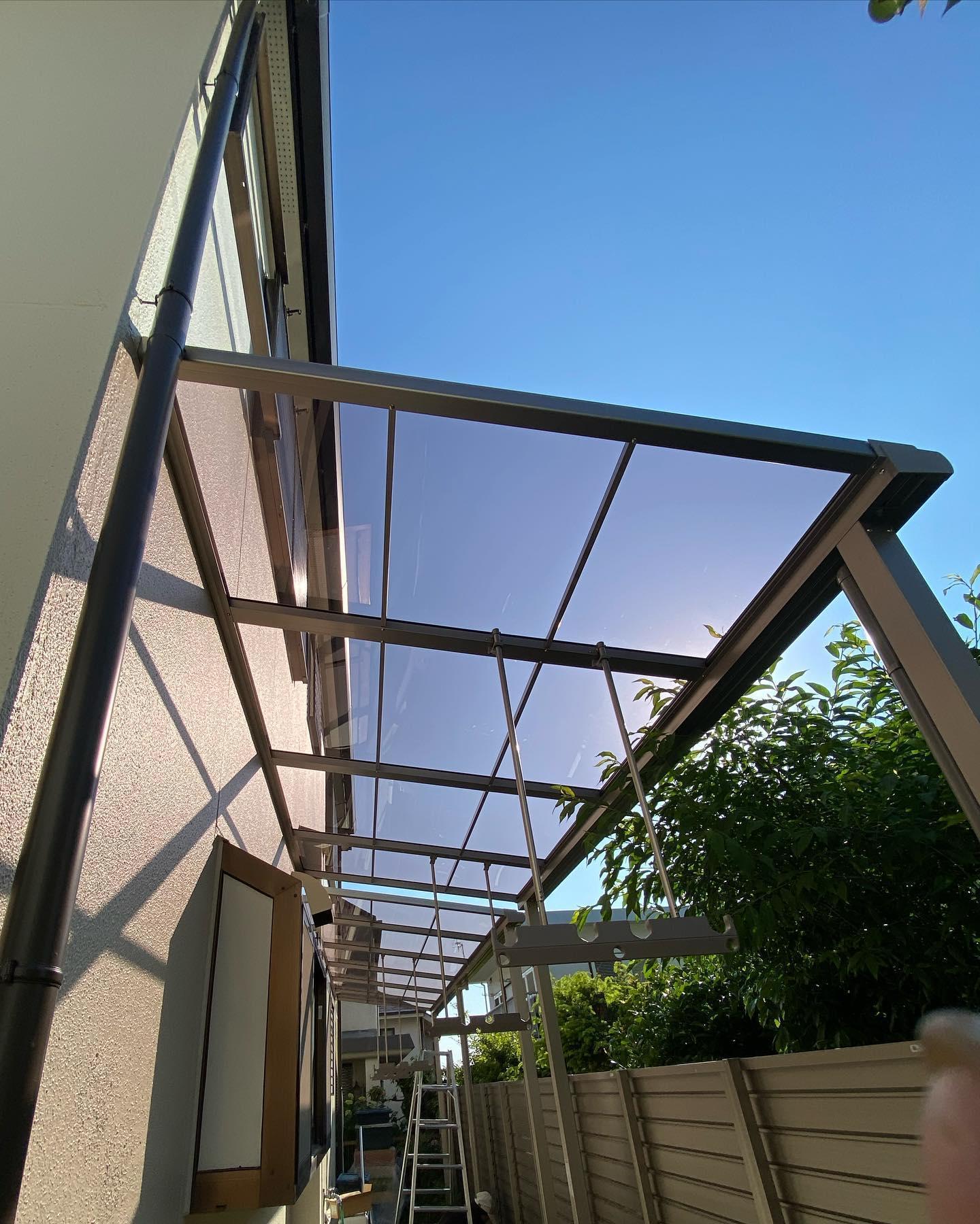 勝手口の庇を撤去し、テラス屋根(LIXILスピーネ)を設置。 サービスヤードとして新たに物干しスペースが生まれました。