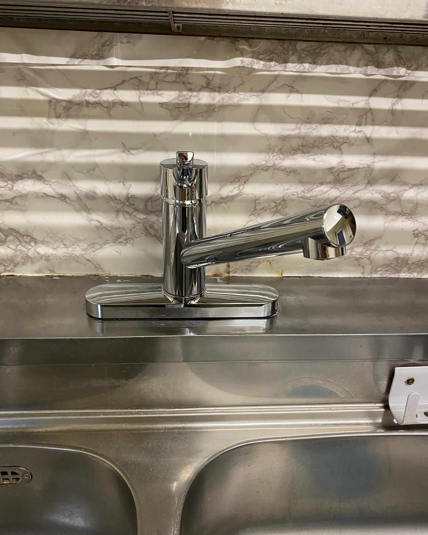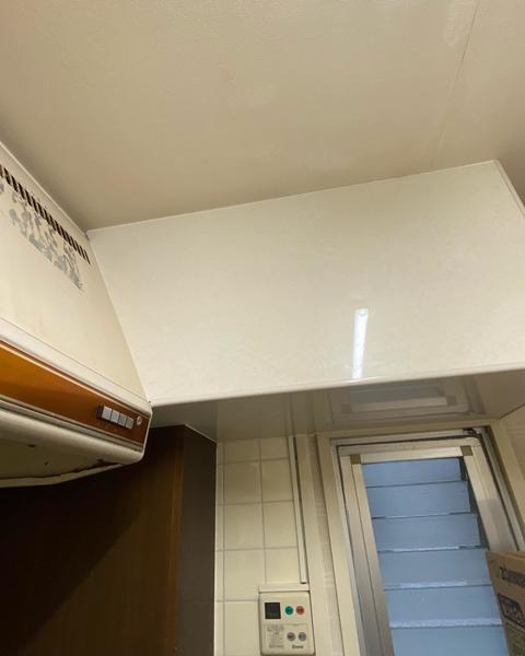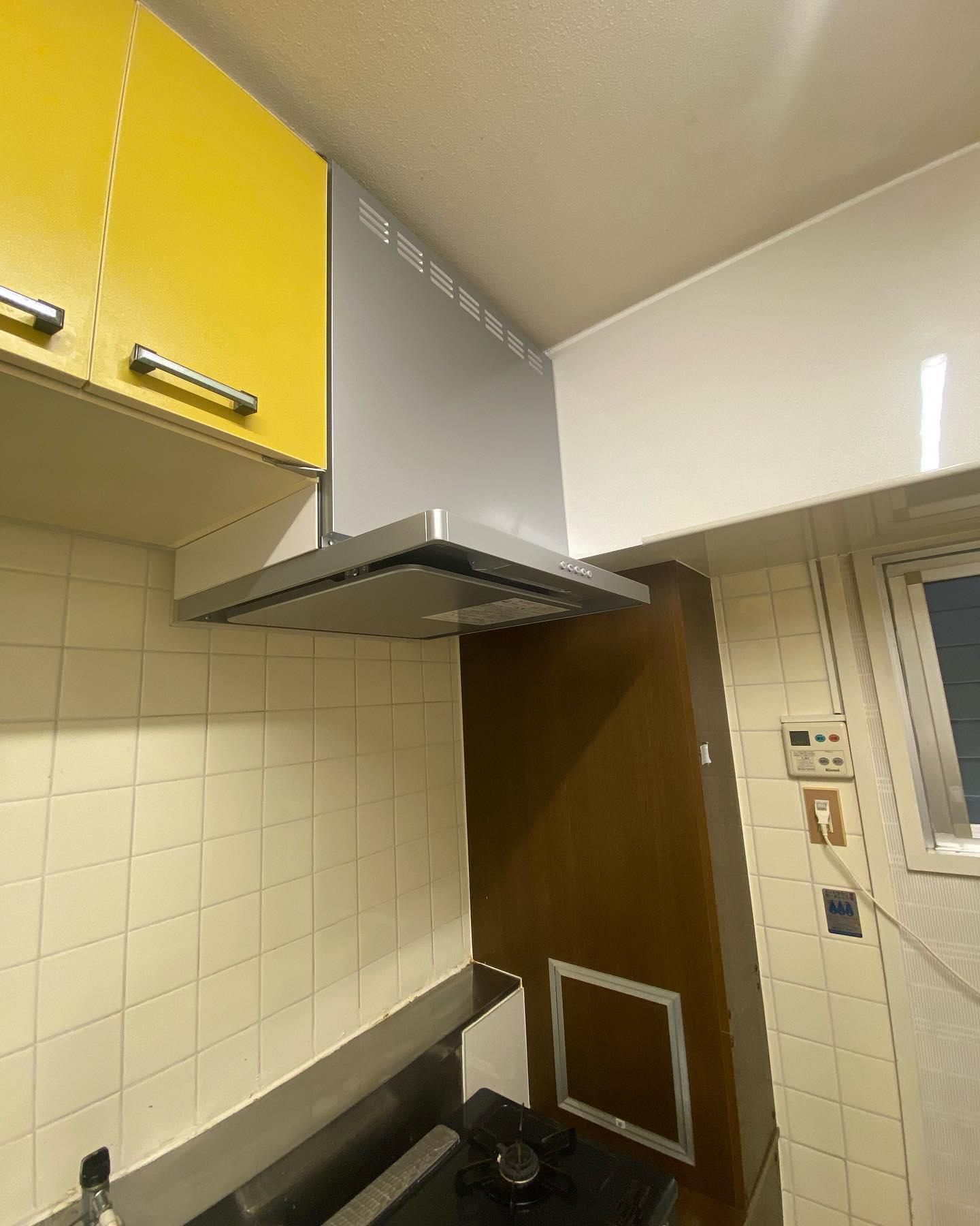 キッチン換気扇、LIXILレンジフードに交換。 水栓も2バルブ混合水栓から、LIXIL混合シングルレバー水栓に新しく交換しました。