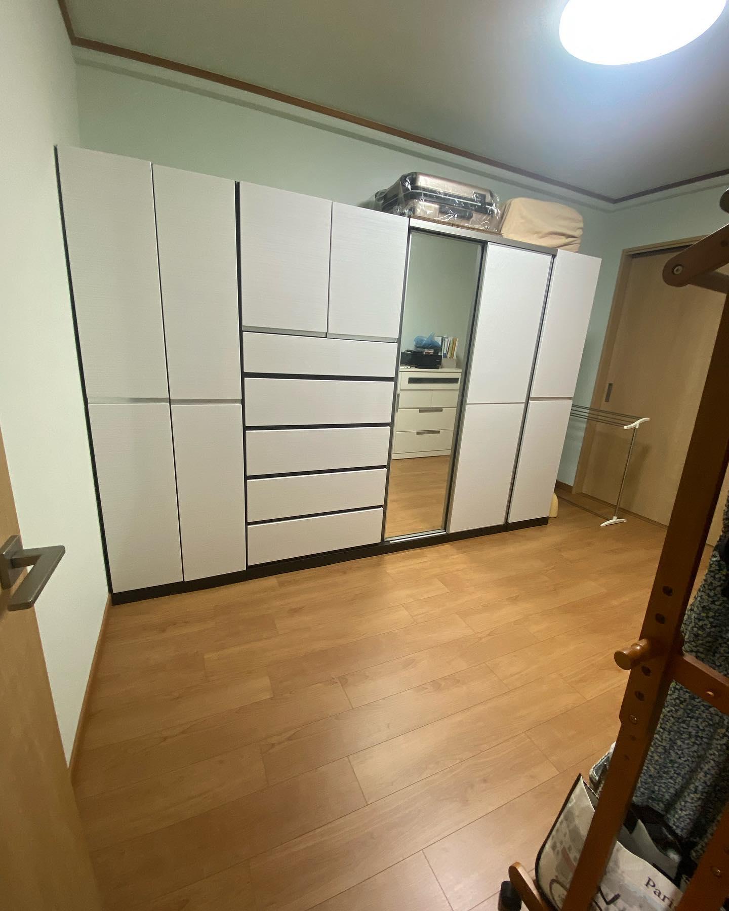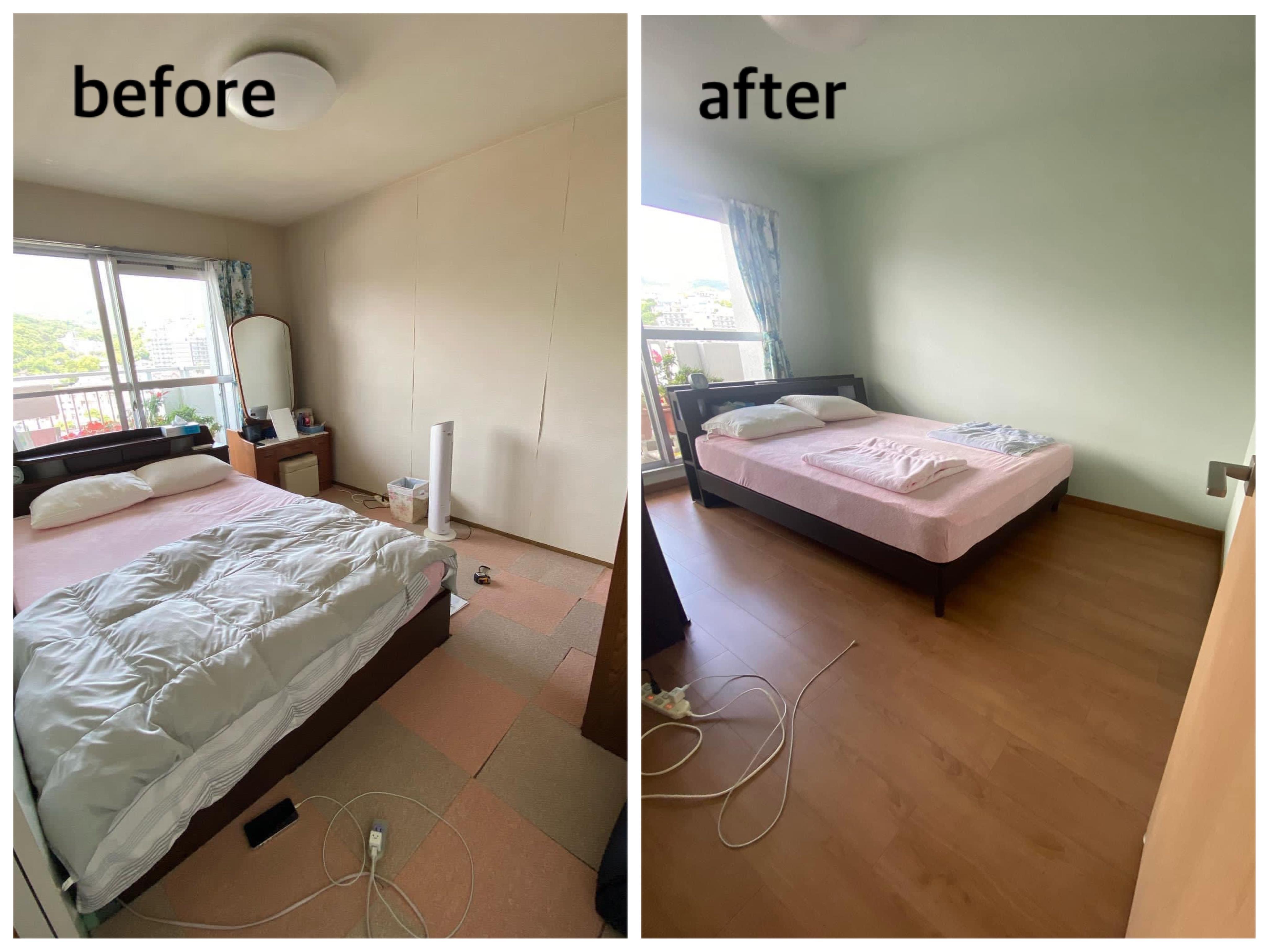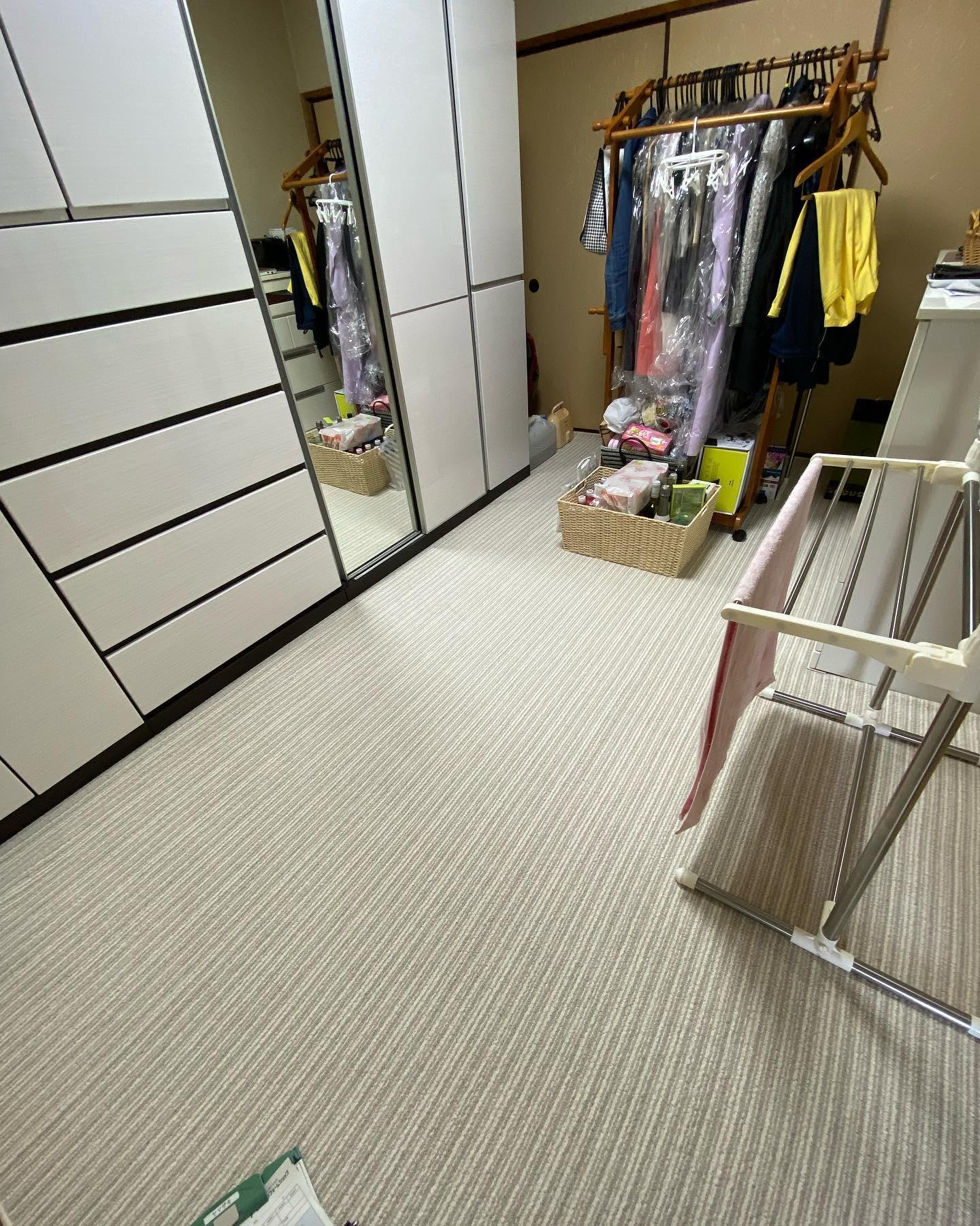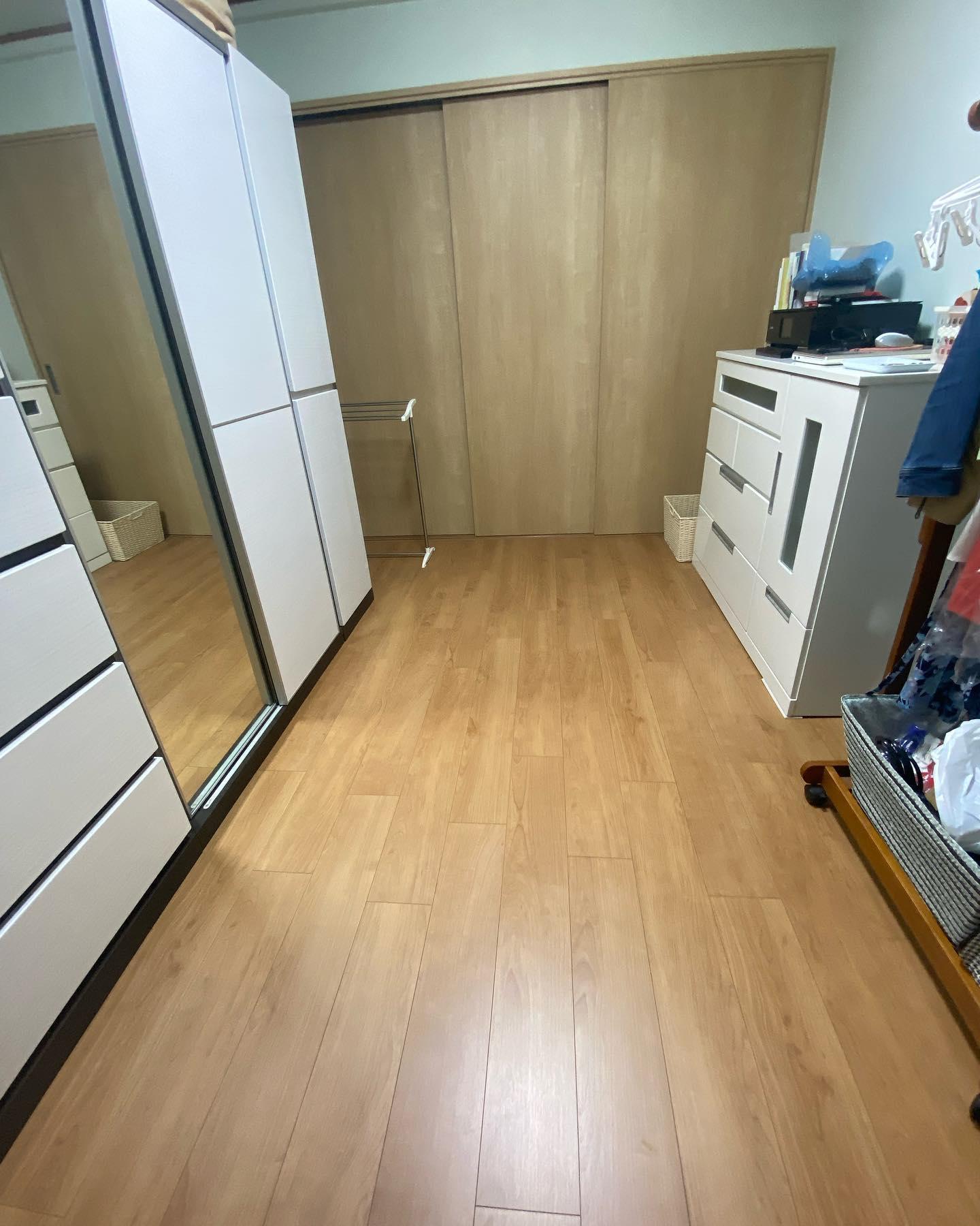 畳の上にカーペット敷きだった和室をフローリングに(LIXILラシッサS防音直張りフロア) 襖の押入れも3枚引戸(LIXILラシッサS建具)のクローゼットにリフォーム。連動して動く引戸は開口が広く収納がしやすくなりました。 段差を解消してバリアフリーになった部屋の入り口の扉は、引戸からドア(LIXILラシッサS建具)に。