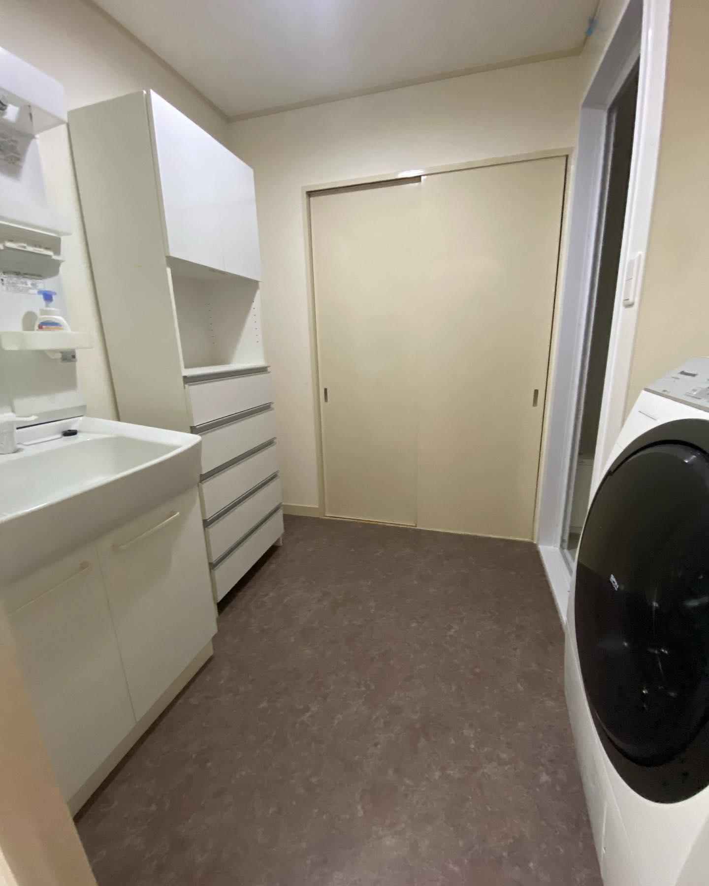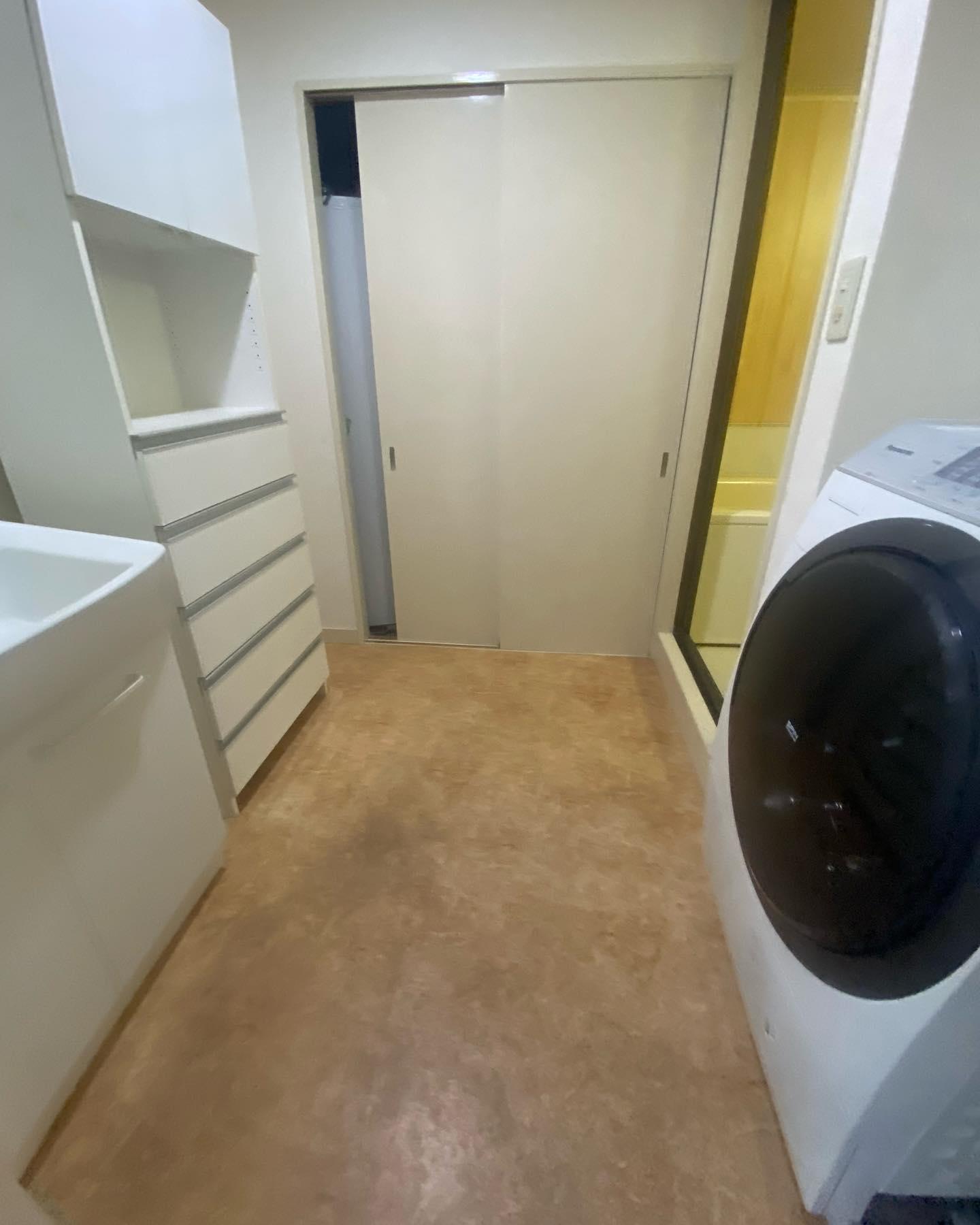 洗面所のクッションフロアを貼り替えるだけでも、気分一新。