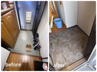キッチン吊り戸、LIXILノクトに交換。(フロアキャビネットは以前に同柄で交換済) オートムーブ吊り戸、レンジフードは再利用、キッチンパネル追加貼り、クロス貼り替え。 玄関のクッションフロアも貼り替えました。