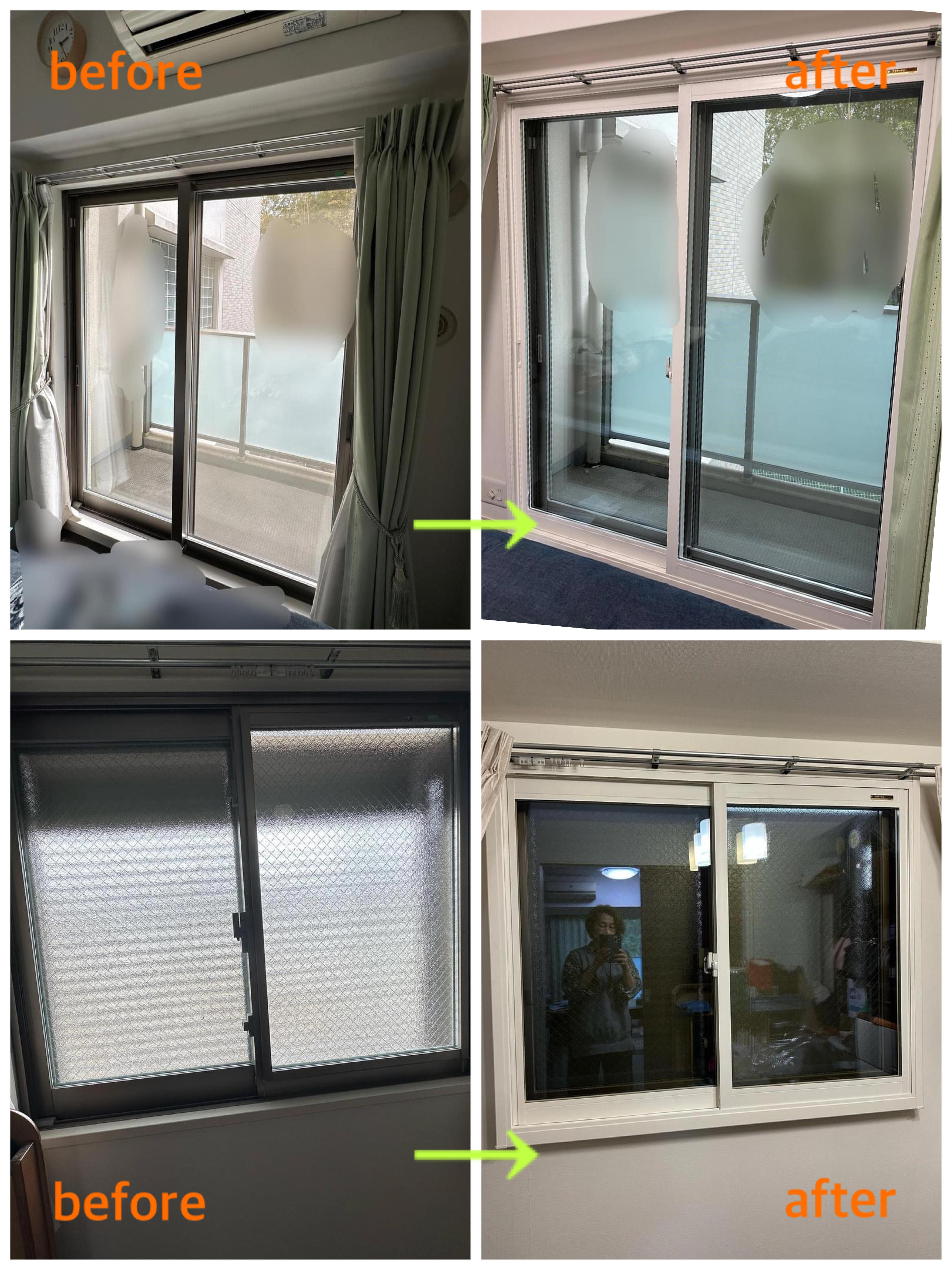 リビングと2部屋の掃き出し窓・腰窓に、内窓サッシを設置(YKK APプラマードU) 防音・断熱効果だけでなく寒い時期には結露防止にも期待。ホワイトの枠を使用し、お部屋が明るい印象に! ※先進的窓リノベ事業補助金対象工事です。