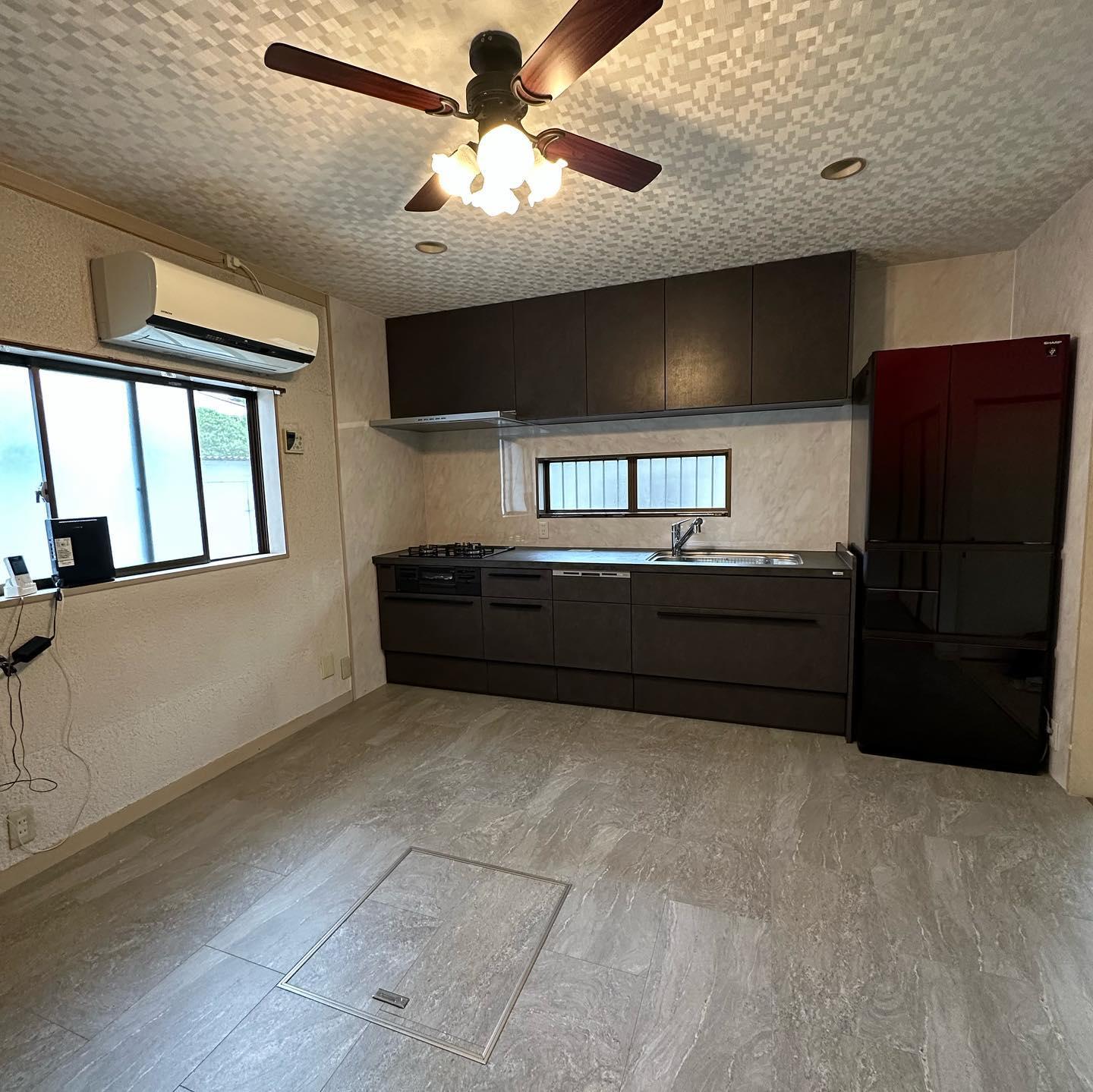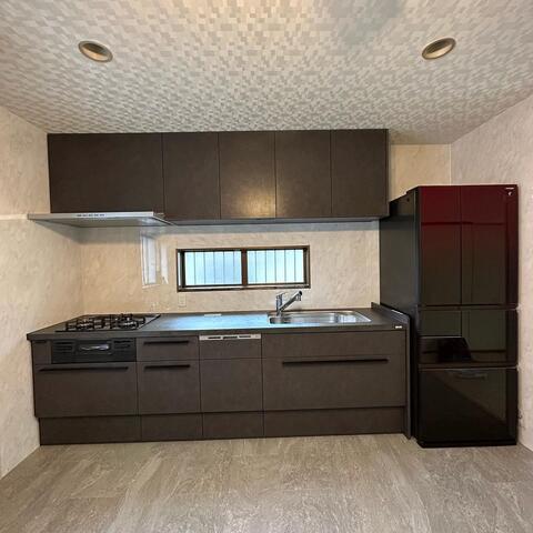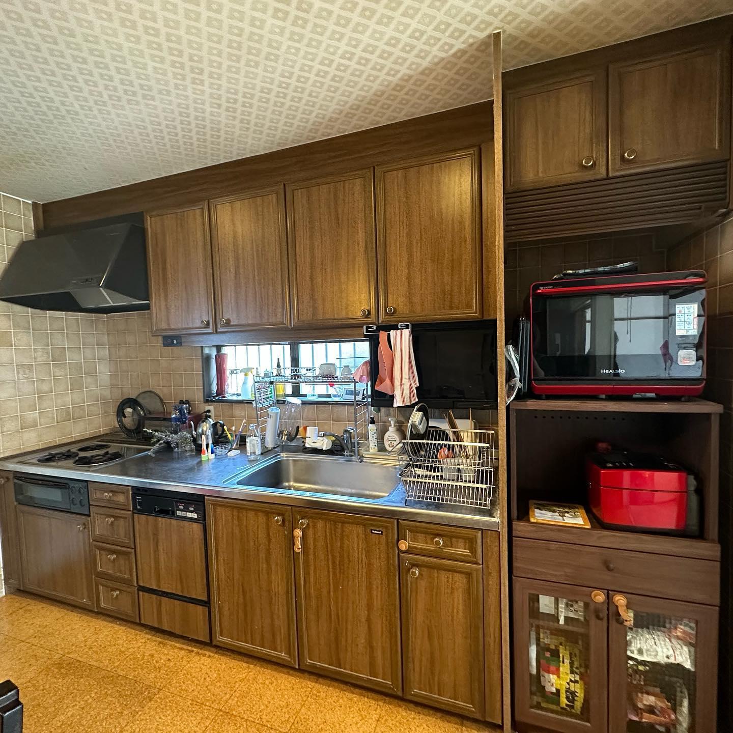 戸建のキッチンリフォーム(LIXILリシェル) セラミック天板、タカギ水栓、AICAキッチンパネル。 天井クロス貼り替え(リリカラ LB9296) 床タイルフロア(サンゲツ IS7010)