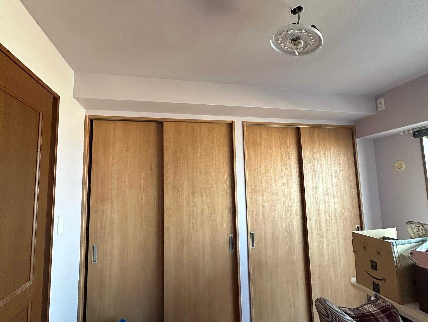 マンション、クローゼットのリフォーム(LIXILラシッサS) クロス貼り替え、扉交換、内部天棚パイプ設置。 洋室2部屋の天井クロスも貼り替え、アクセントクロスでメリハリのある仕上がり。