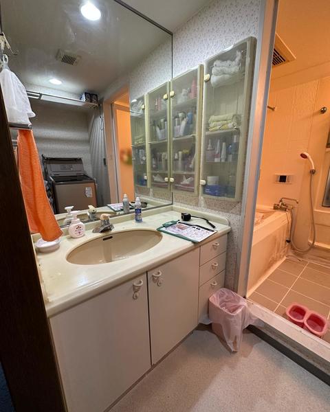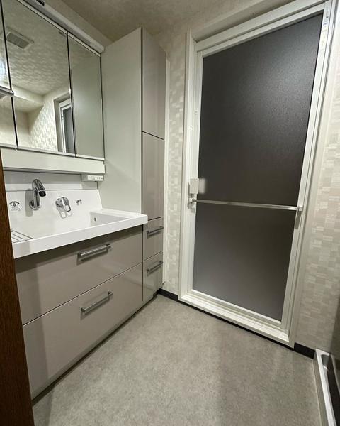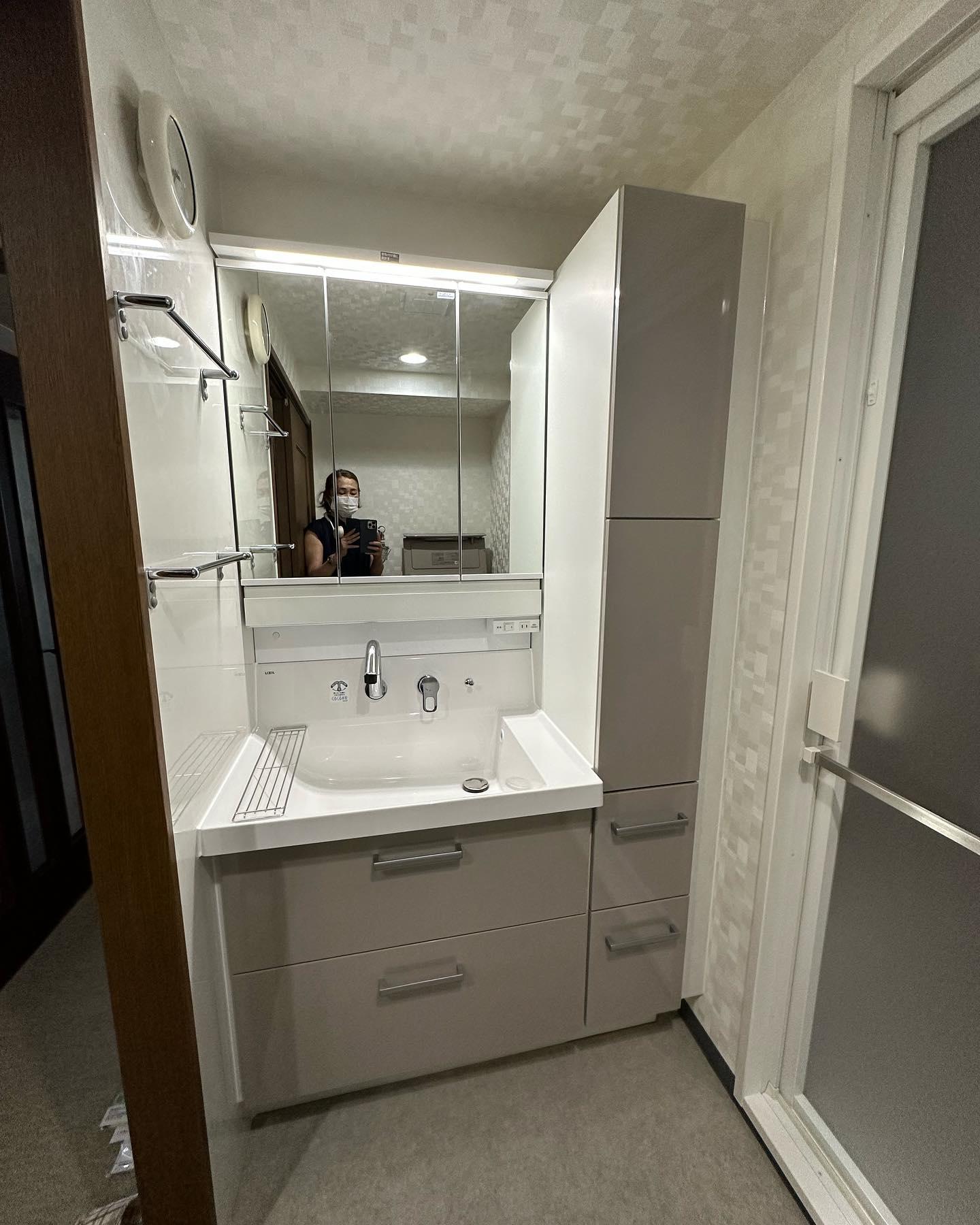 LIXILピアラ トールキャビネットと併せてスッキリ収納。 内装、クロス・クッションフロア貼り替え(リリカラ)