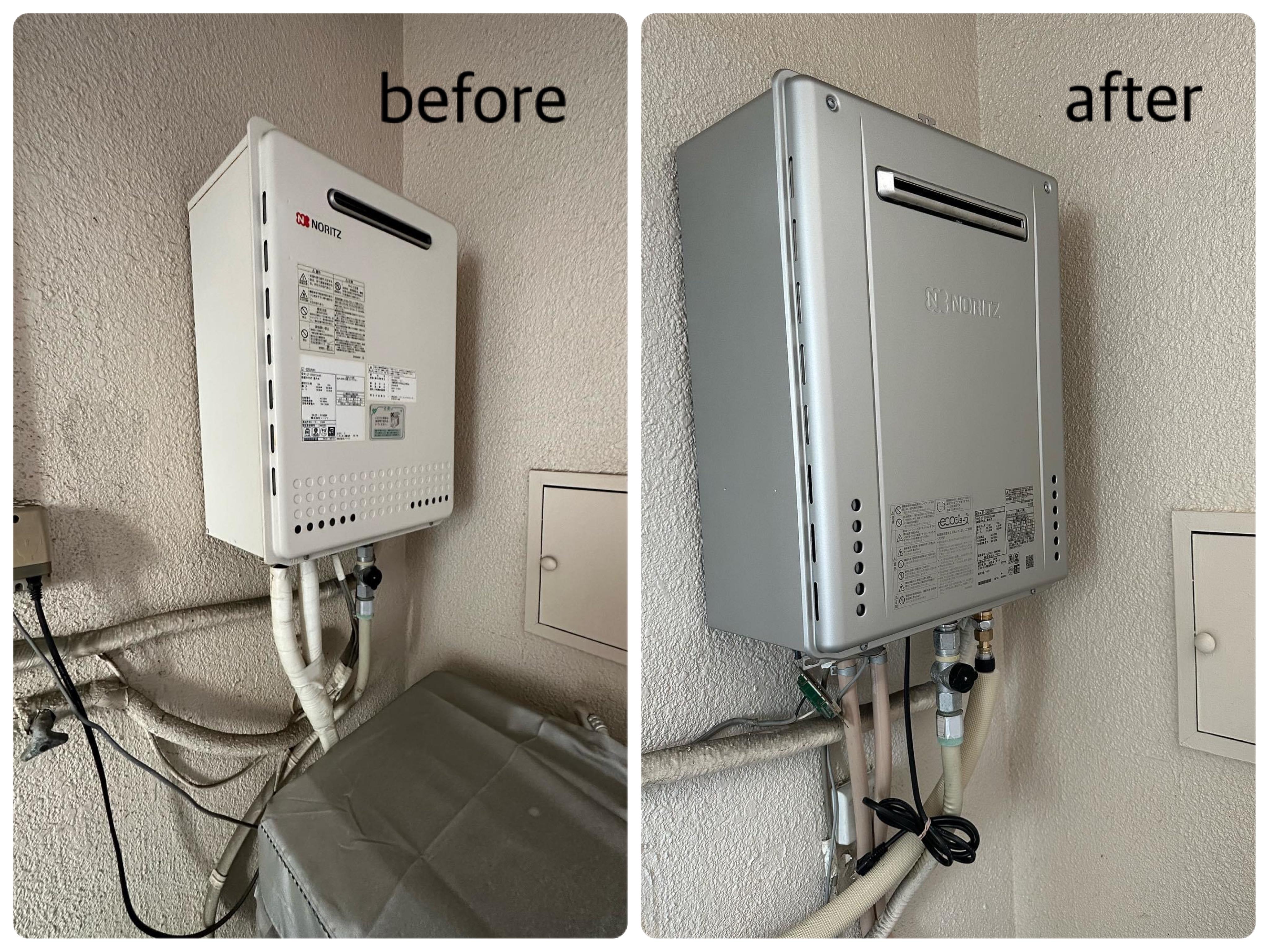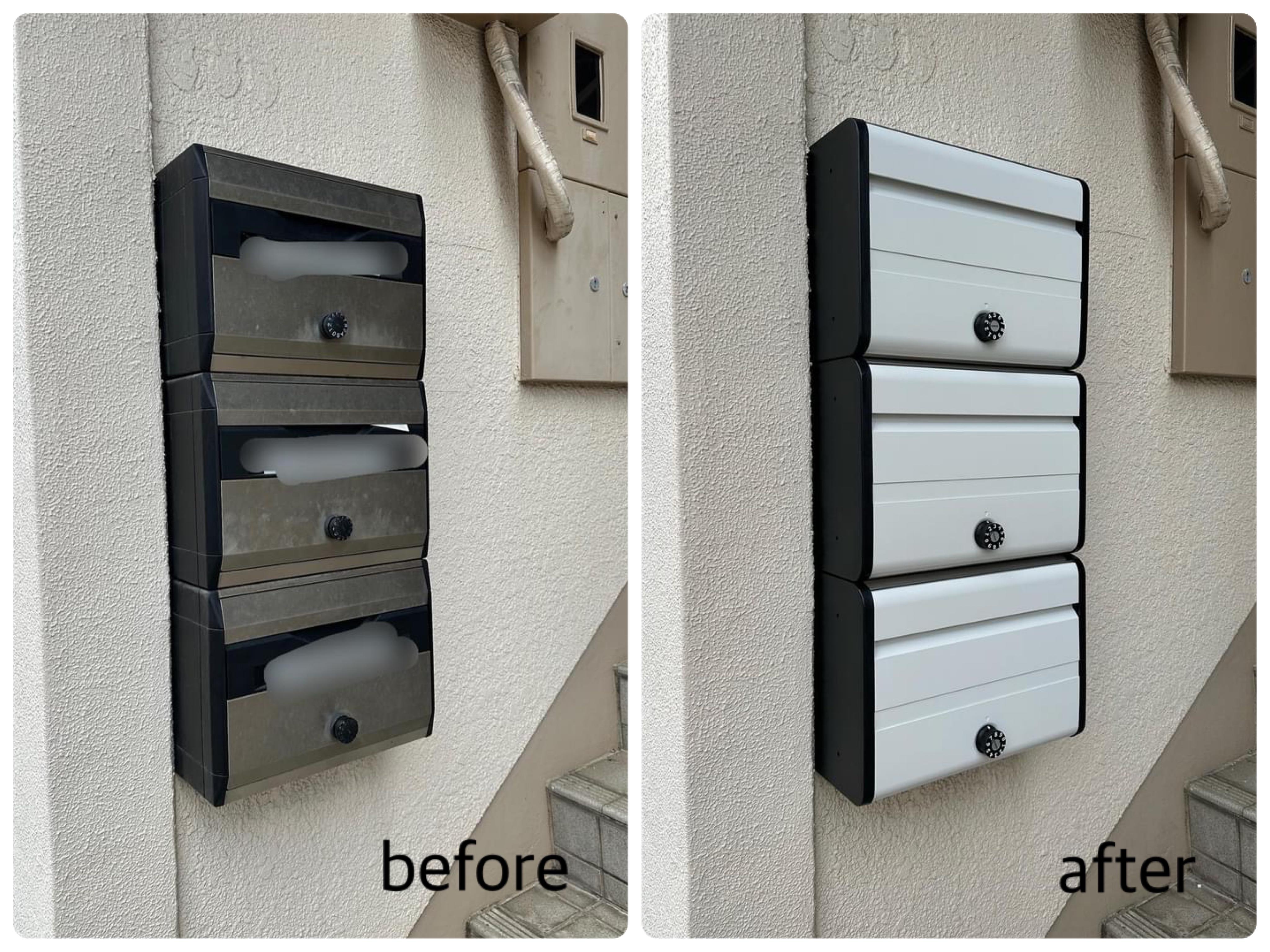 玄関ドア交換、カバー工法(LIXILリシェント) 集合ポスト交換 給湯器交換、エコジョーズ ※ドア・給湯器はこどもエコすまい事業補助金対象工事です。