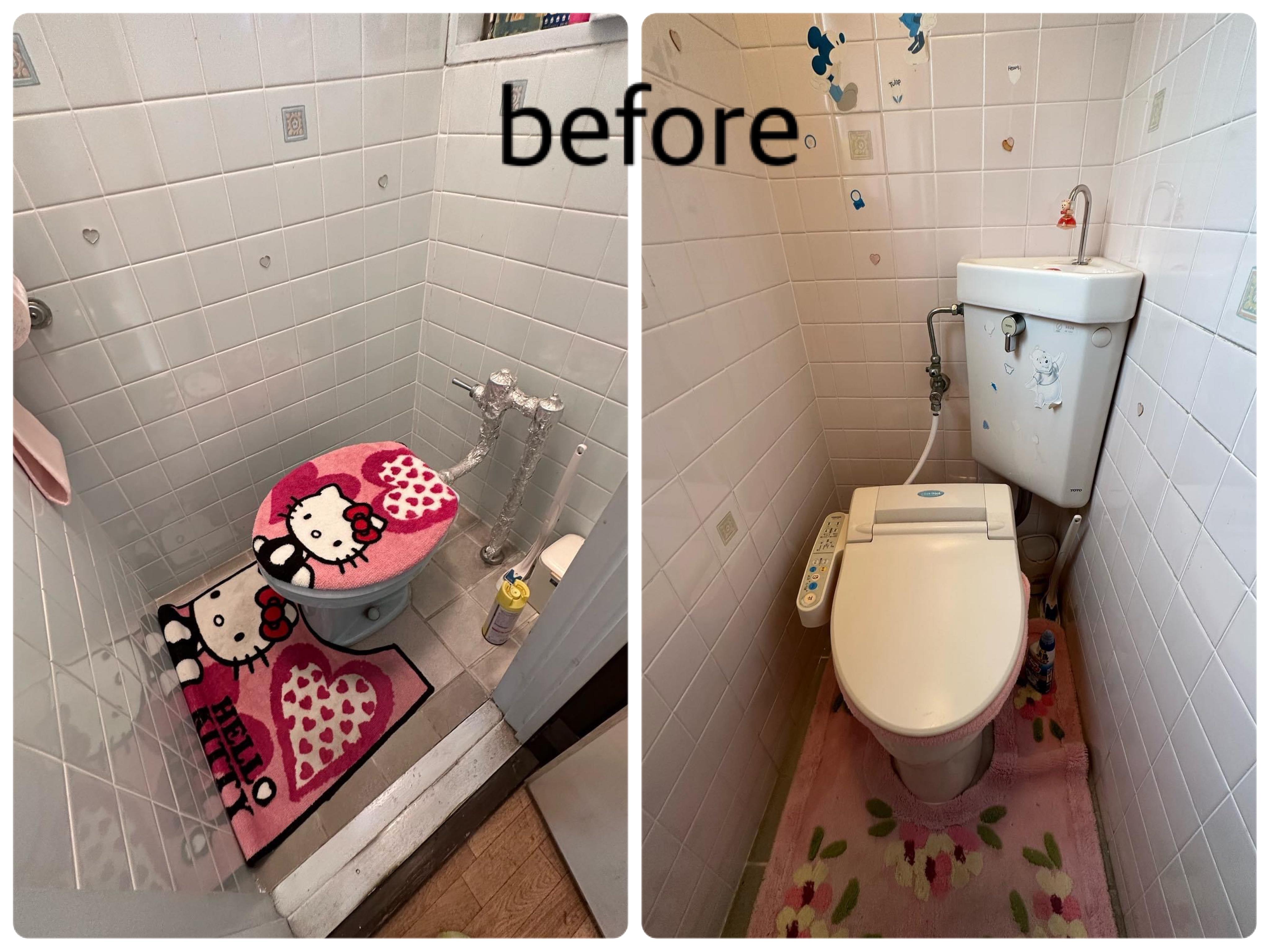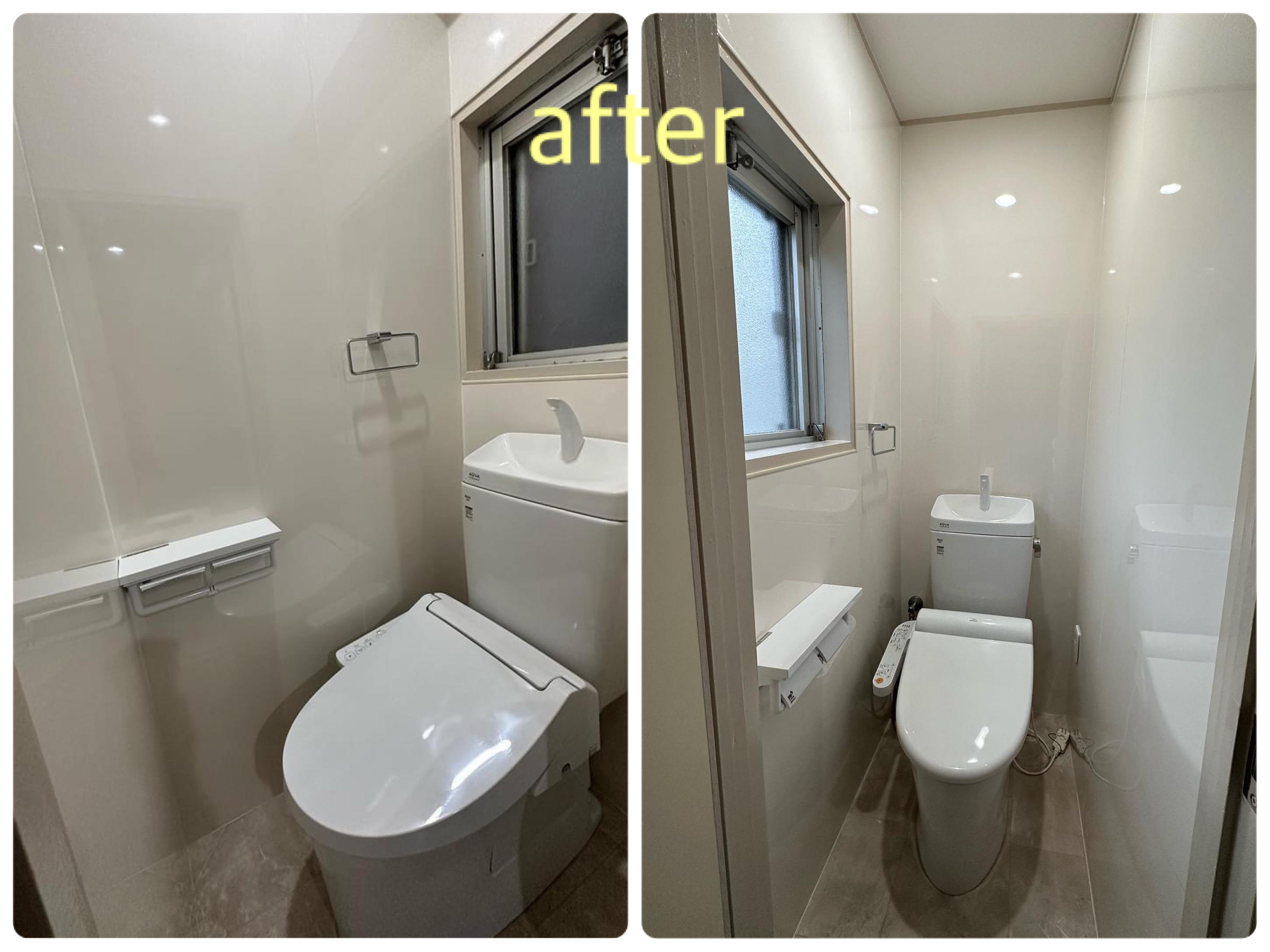 トイレ交換(LIXILアメージュ) AICAパネル貼り、クッションフロア貼り替え ※節水型トイレ設置はこどもエコすまい事業補助金対象工事です。