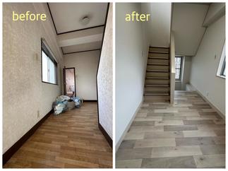 床張り替え、クロス貼り替え、階段カーペット張り、木部塗装