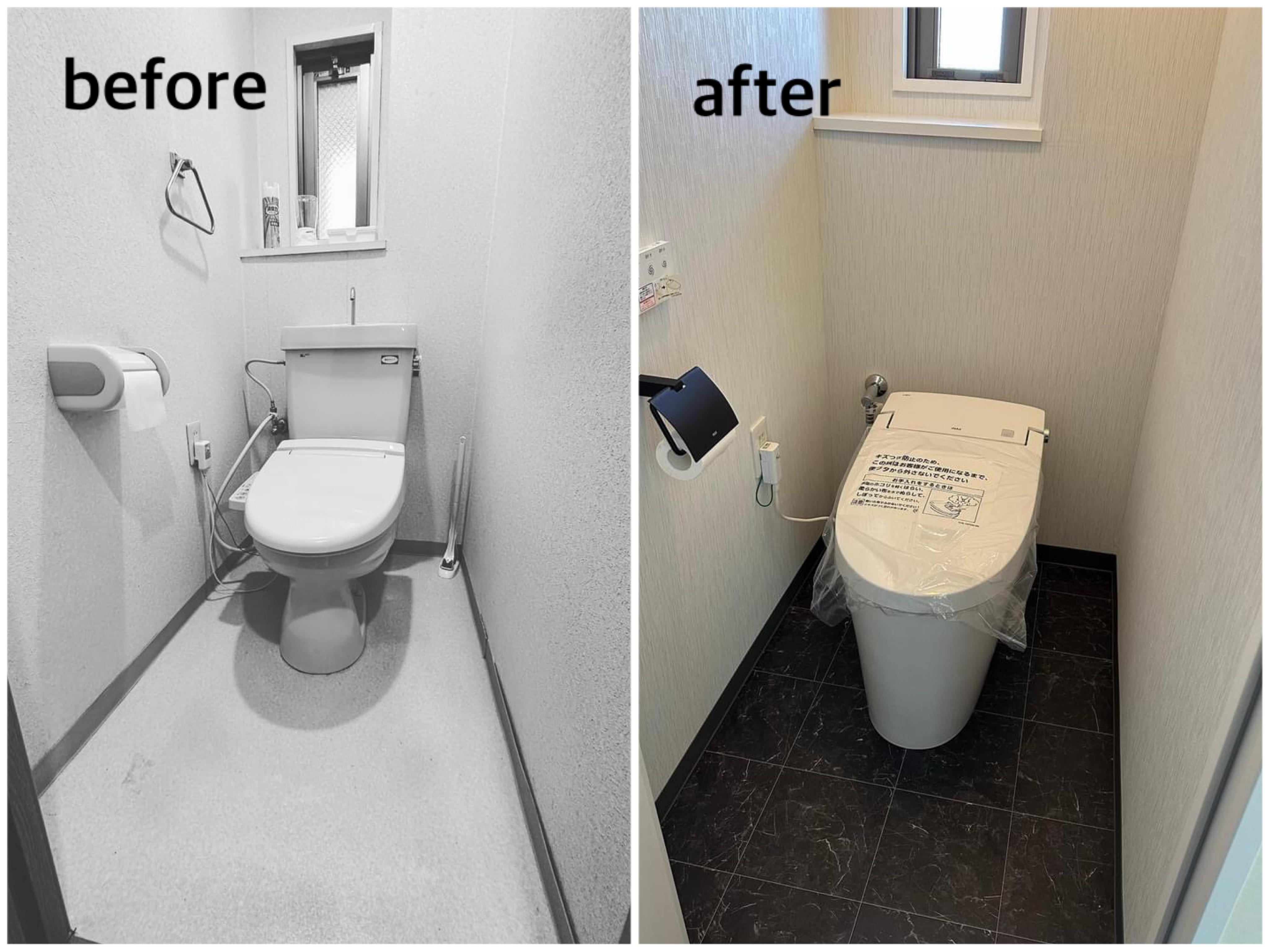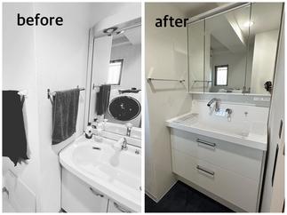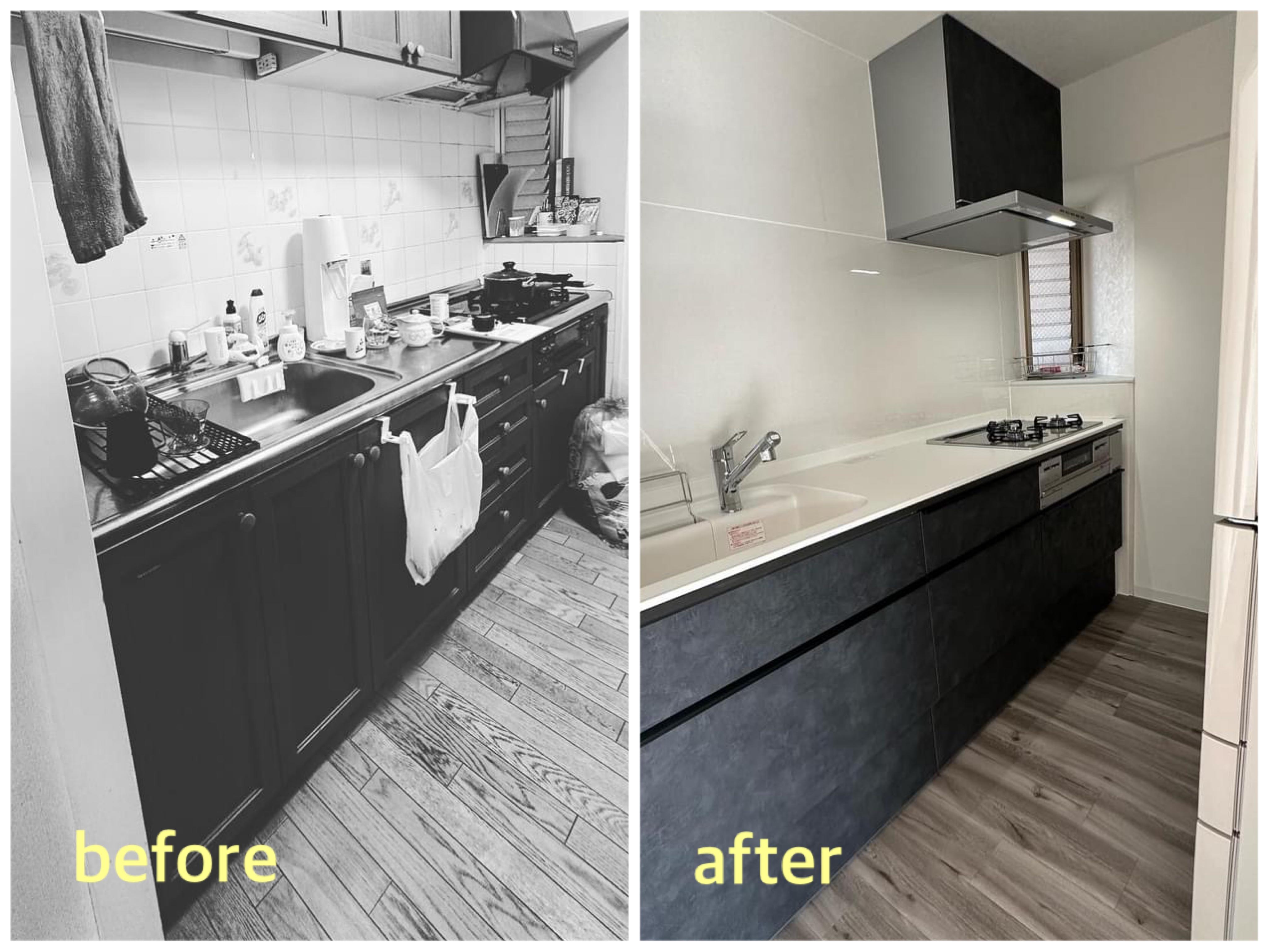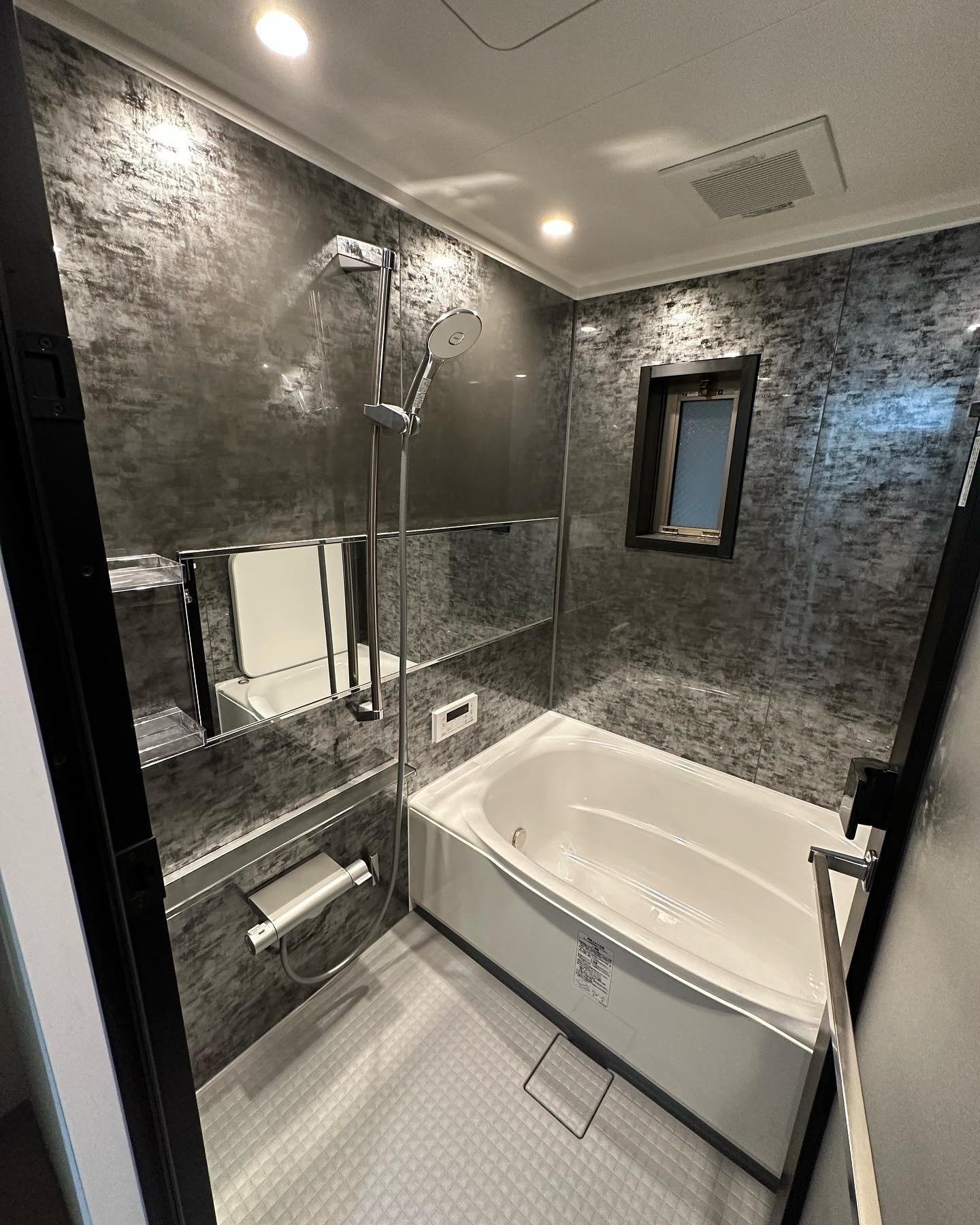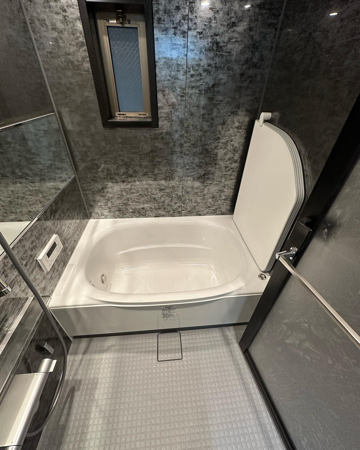 浴室交換(LIXILリノビオV)壁パネル:ヘイジーシルバー、トイレ交換(LIXILサティスS)、洗面化粧台交換(LIXILピアラ)扉カラー:グロスホワイト、キッチン交換(LIXILシエラ)扉カラー:ブラックスタッコ、床張り替え(LIXILラシッサD防音直張り)