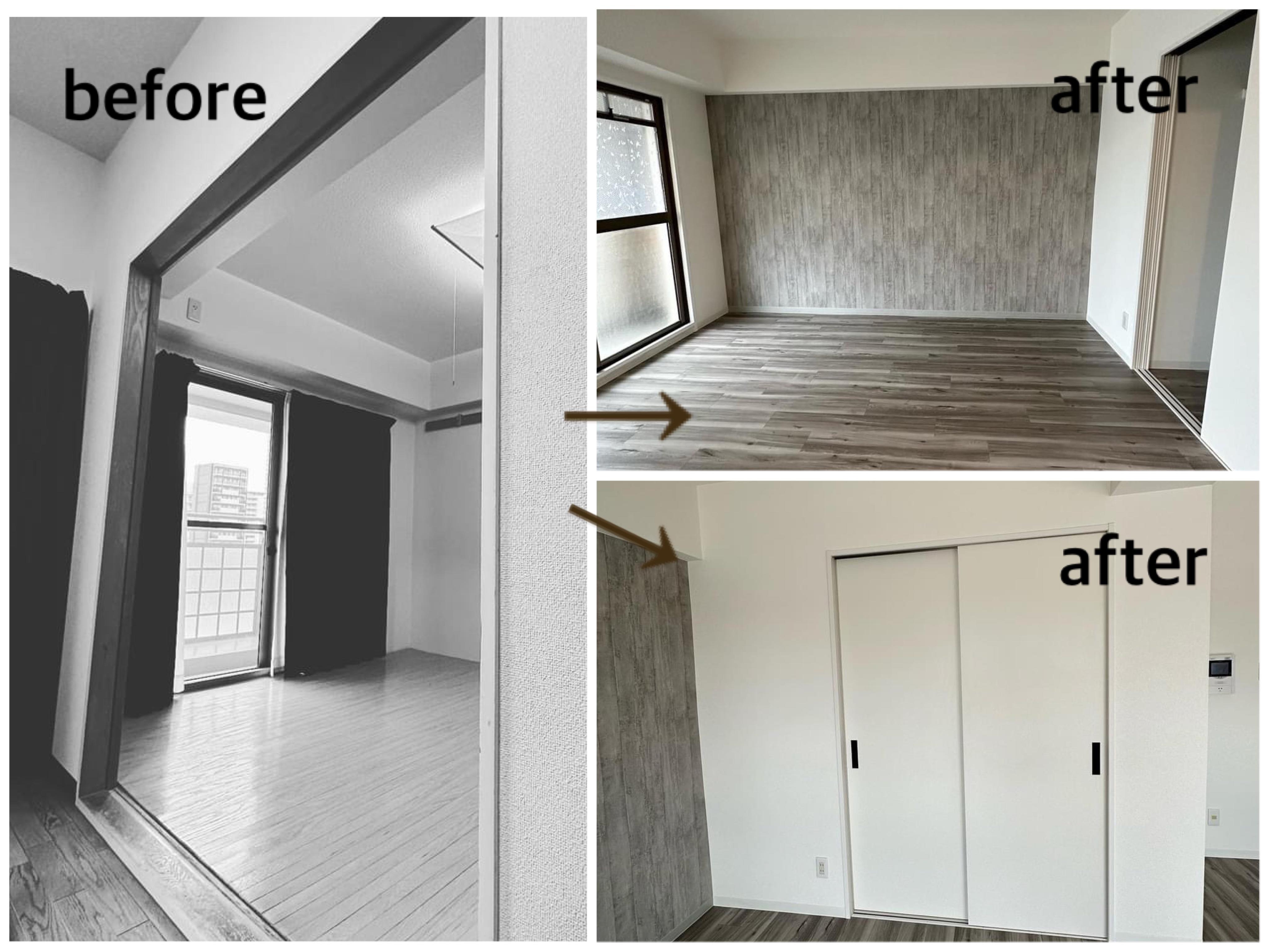 水回りフルリノベーションに加え、和室をリビングに取り込み広々LDKに。
