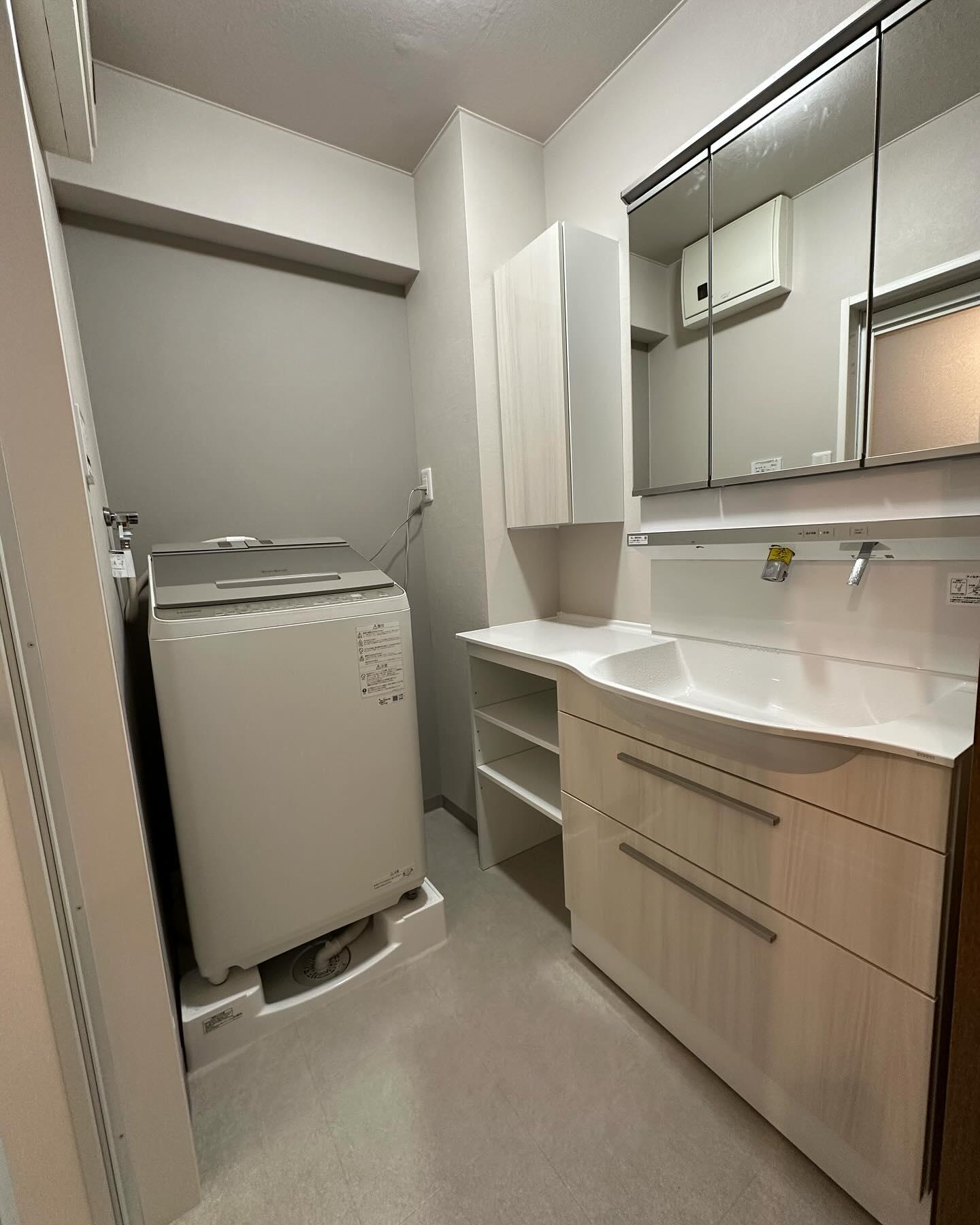 奥行500、収納カウンター設置、洗濯パン・水栓交換。