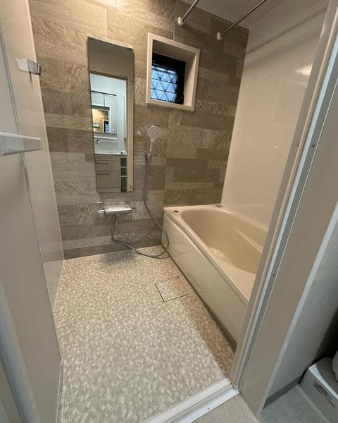 ほっからり床、入口幅を拡張・段差解消…さらに浴室内の梁もなくなりスッキリ。グレージュでまとめたカラーコーディネートで柔らかな印象の浴室に。