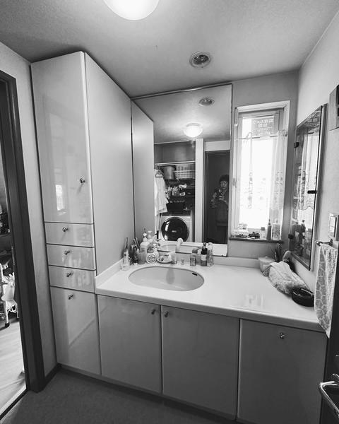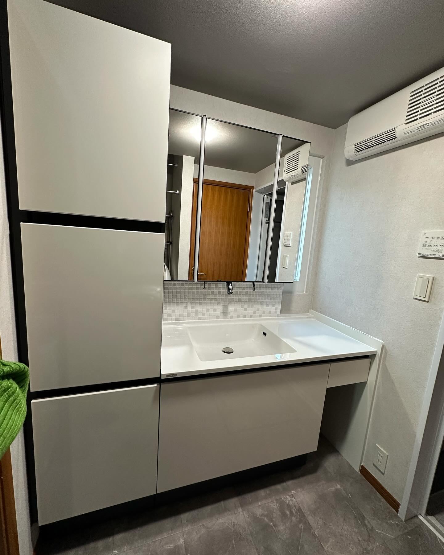 鏡が大きく3面に、広々洗面ボウルや水栓周りは掃除しやすく清潔にお使いいただけます。