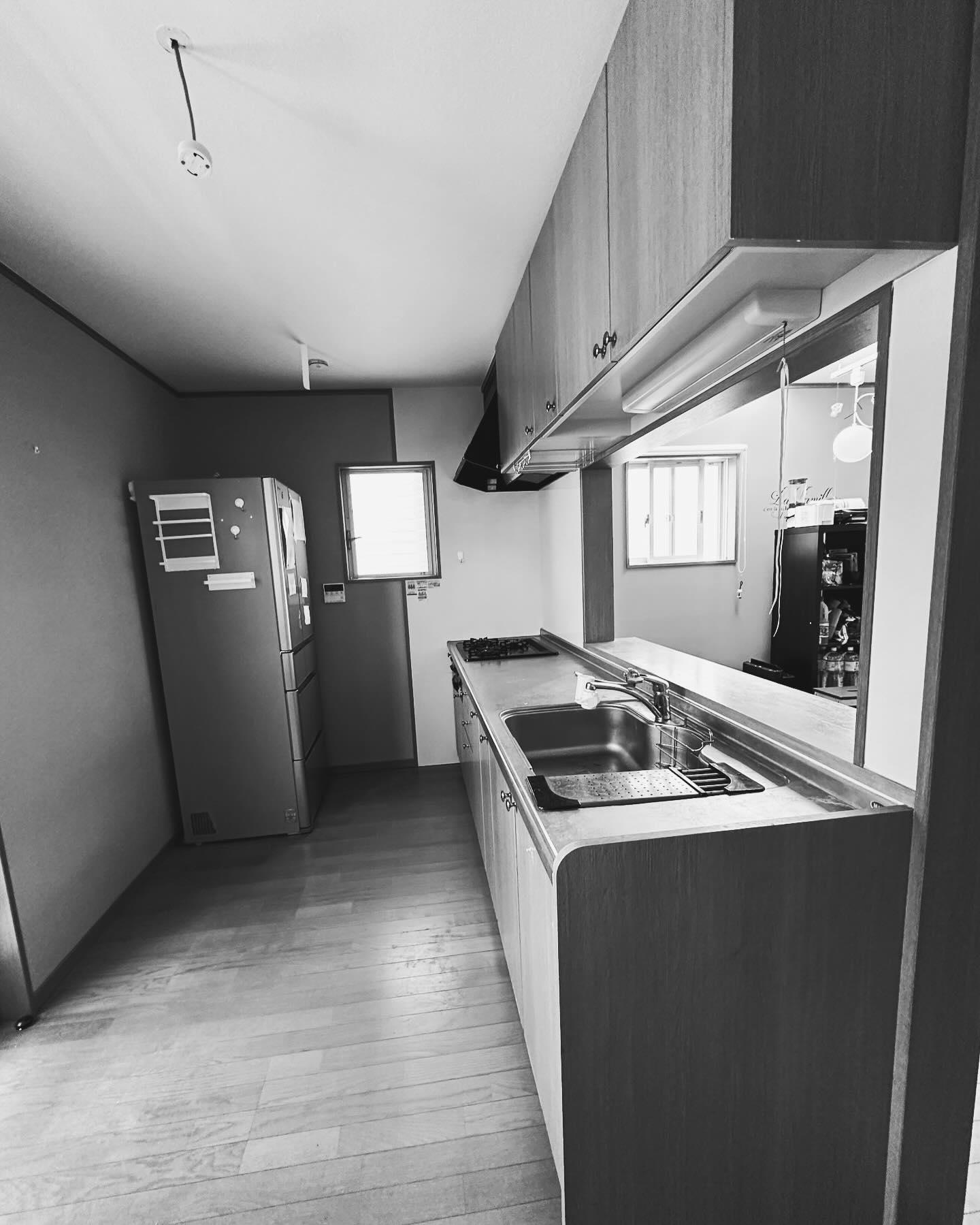 構造上抜けない壁を一部残し、吊戸棚を撤去。