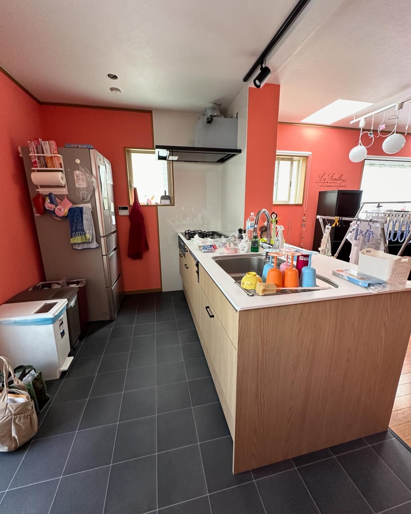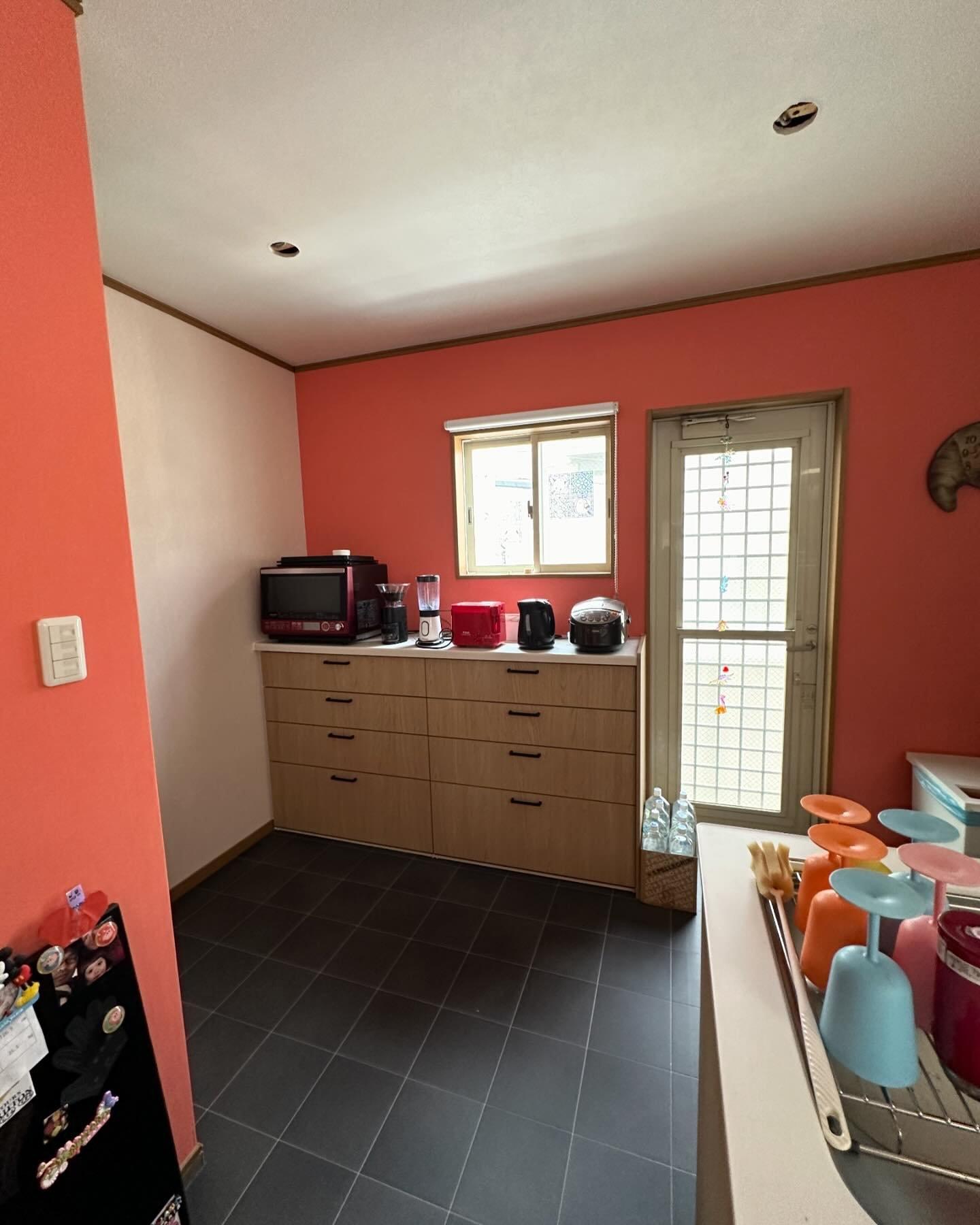 カップボードも設置し、使い勝手良く個性豊かなキッチンになりました。