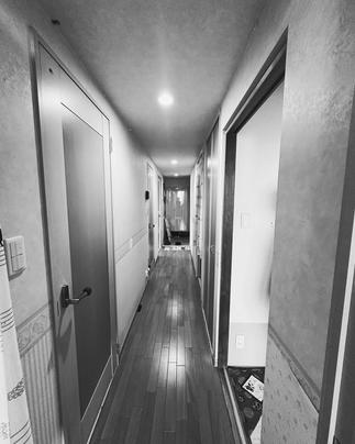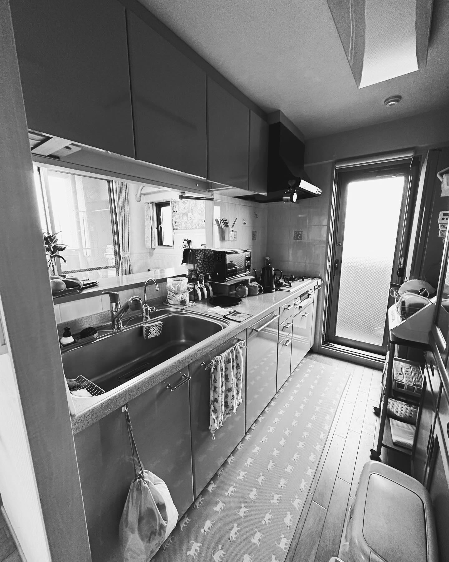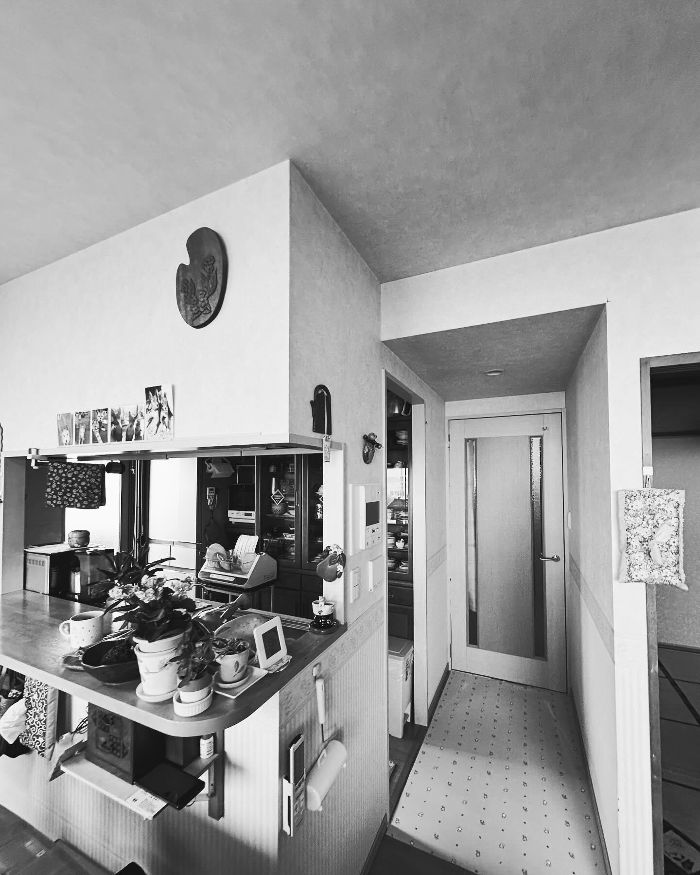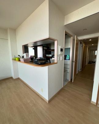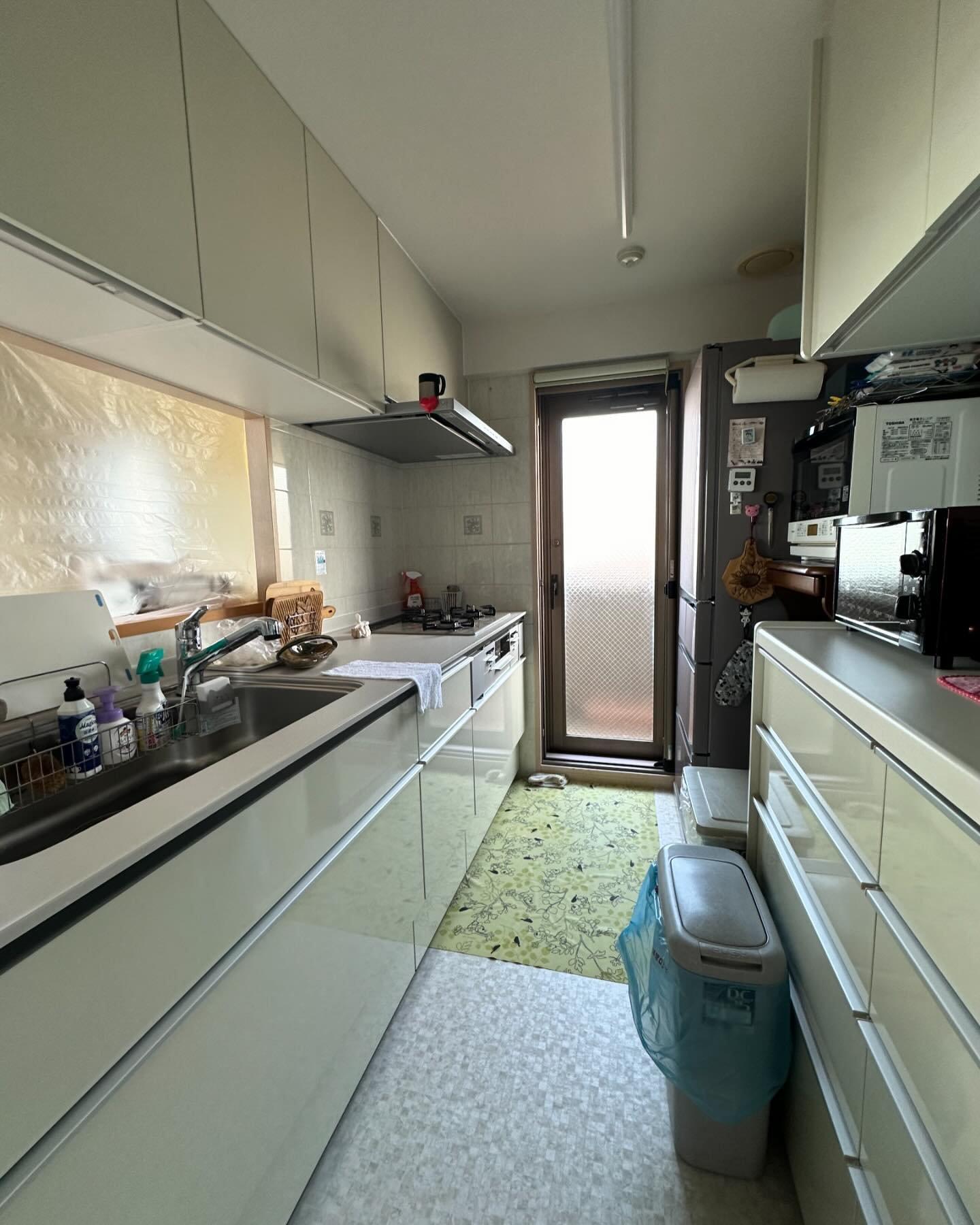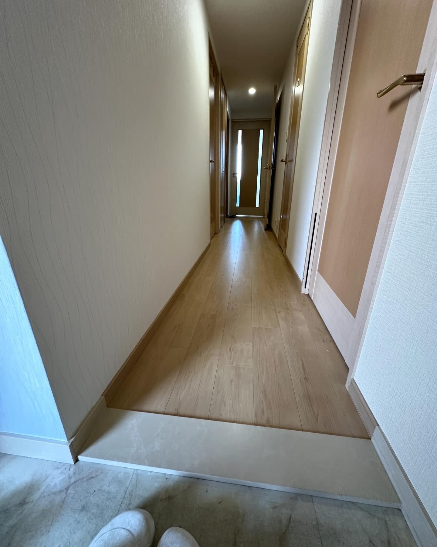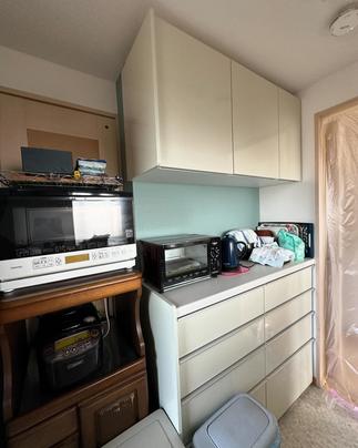 リビング・廊下、床張り替え(ラシッサSクリエペール) キッチン交換・カップボード設置(LIXIL ノクト) 扉カラー:ミュートグリーン クロス貼り替え(サンゲツ)