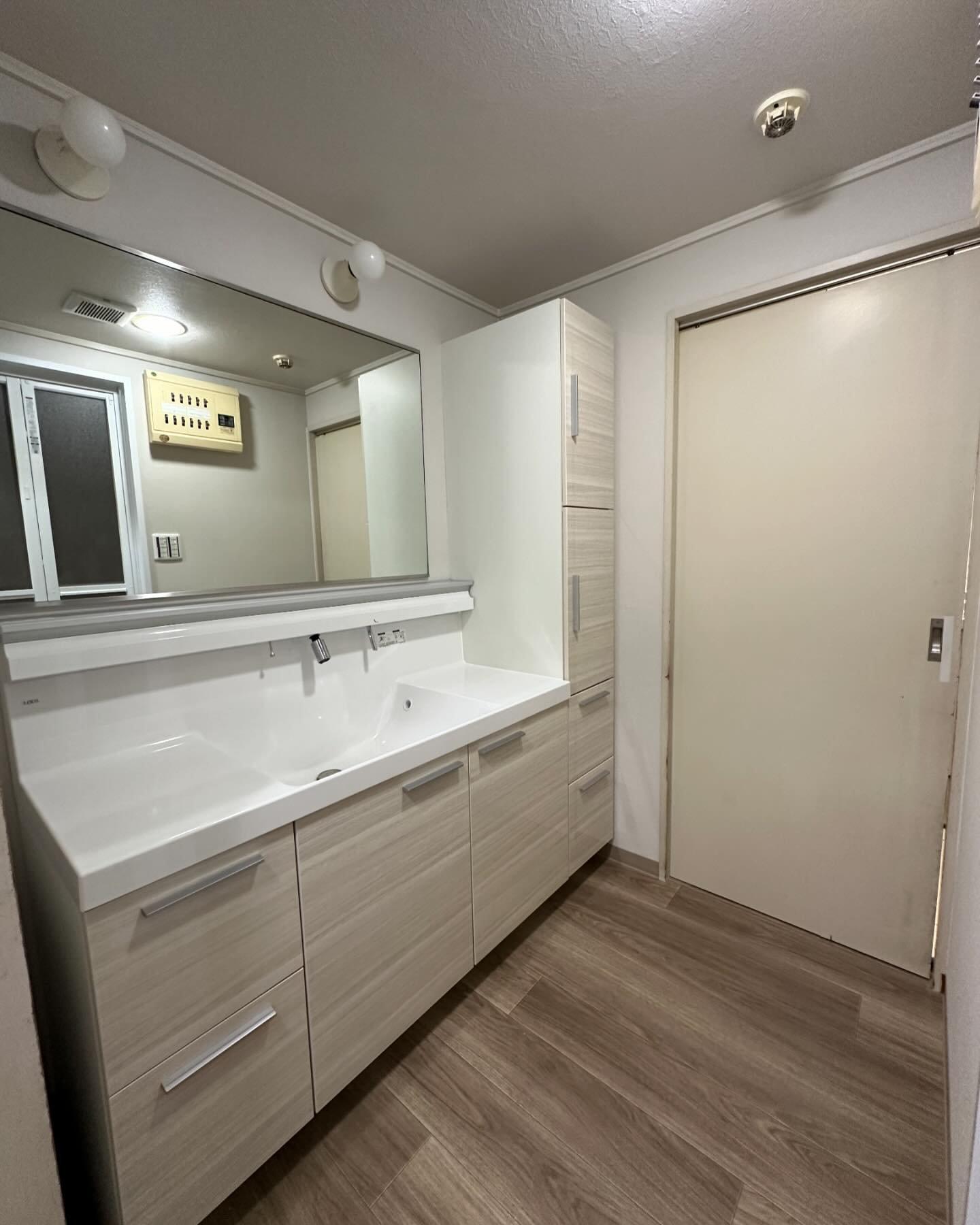 ・浴室ユニットバス交換(LIXILリノビオV) 浴槽:ベージュ 壁パネル:ウッドグレインライト ・キッチン交換(LIXILシエラ)扉カラー:ラスティックアッシュ ガスコンロからIHへ ・洗面台下台収納交換(LIXILクレヴィ)鏡再利用 扉カラー:ノースウッドホワイト